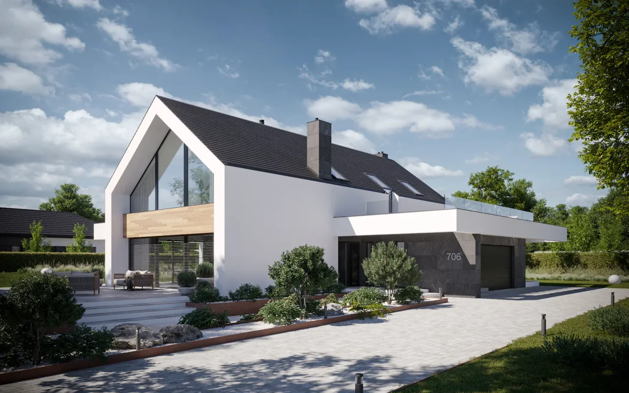 Wypełnij formularz i otrzymaj rysunki w pdf z dokładnymi wymiarami budynku i pomieszczeń (długość, szerokość, wysokość) dla projektu New House 706