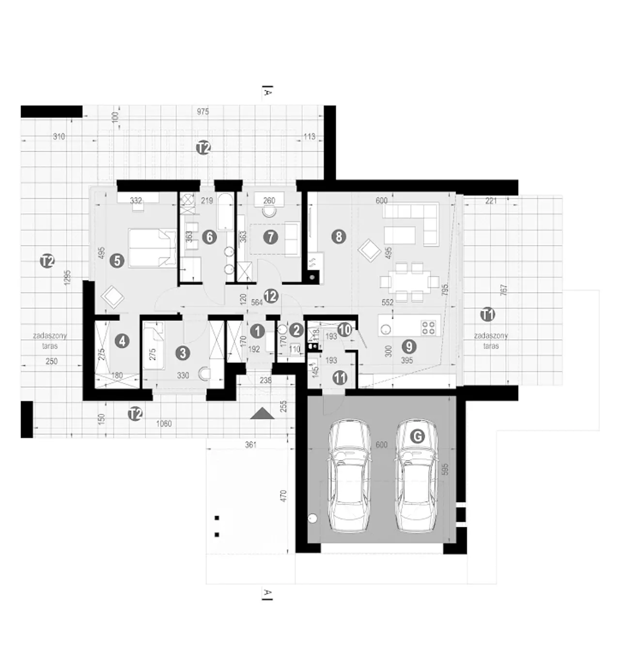Wypełnij formularz i otrzymaj rysunki w pdf z dokładnymi wymiarami budynku i pomieszczeń (długość, szerokość, wysokość) dla projektu New House 716