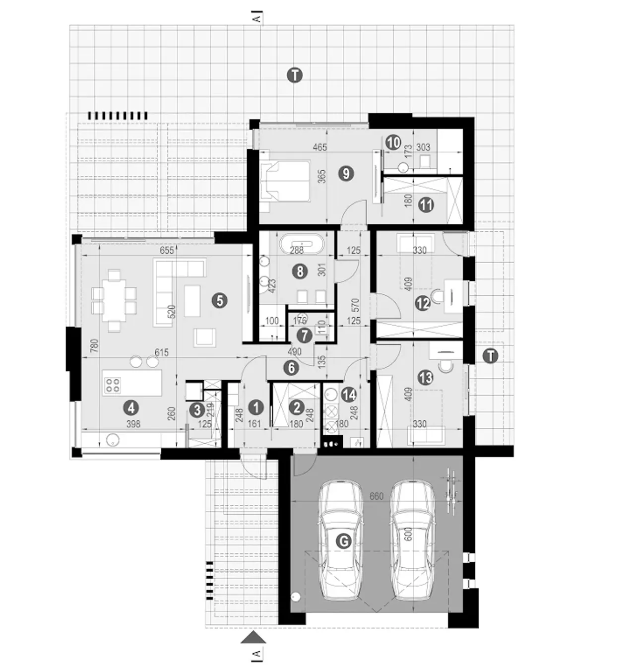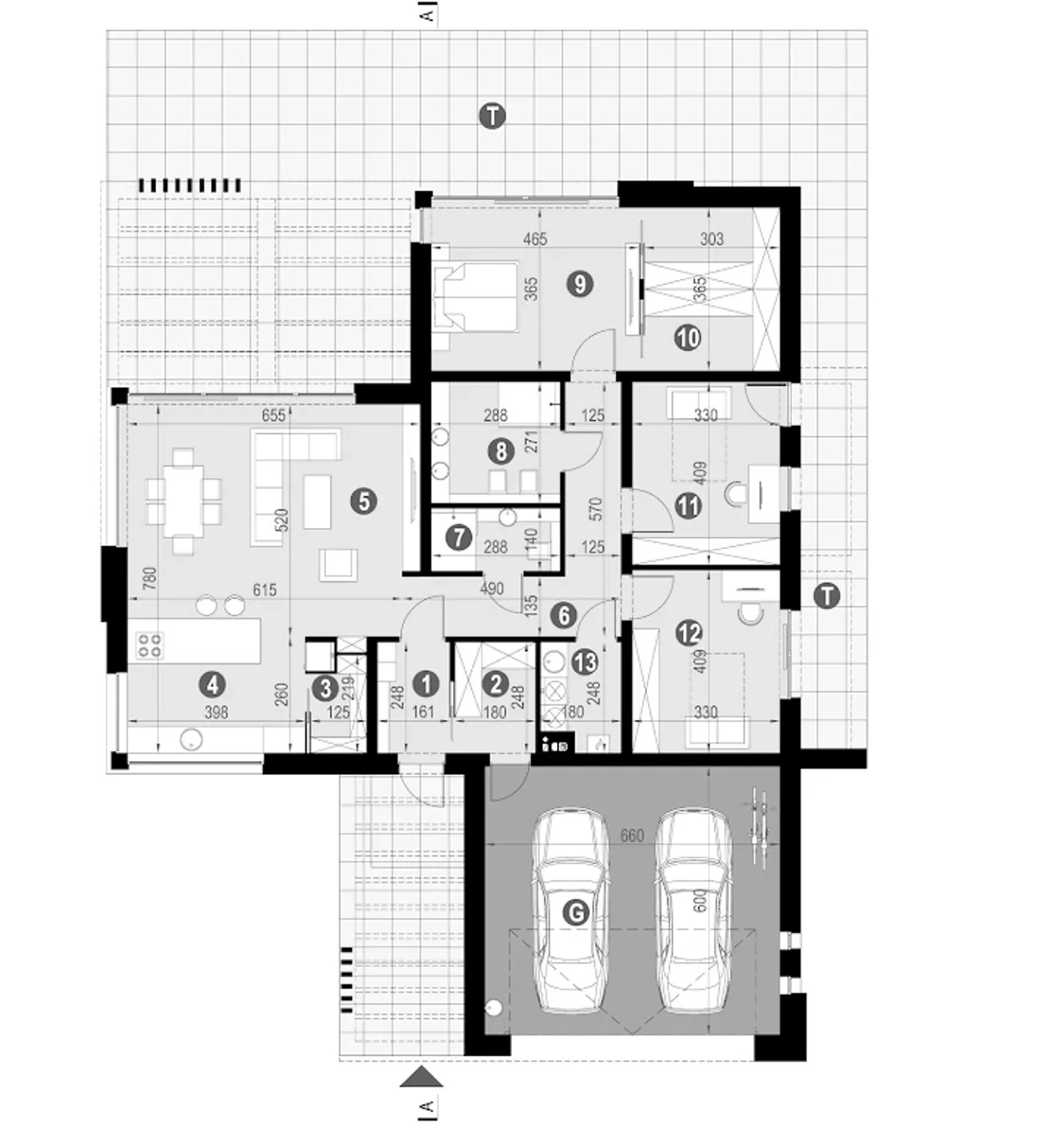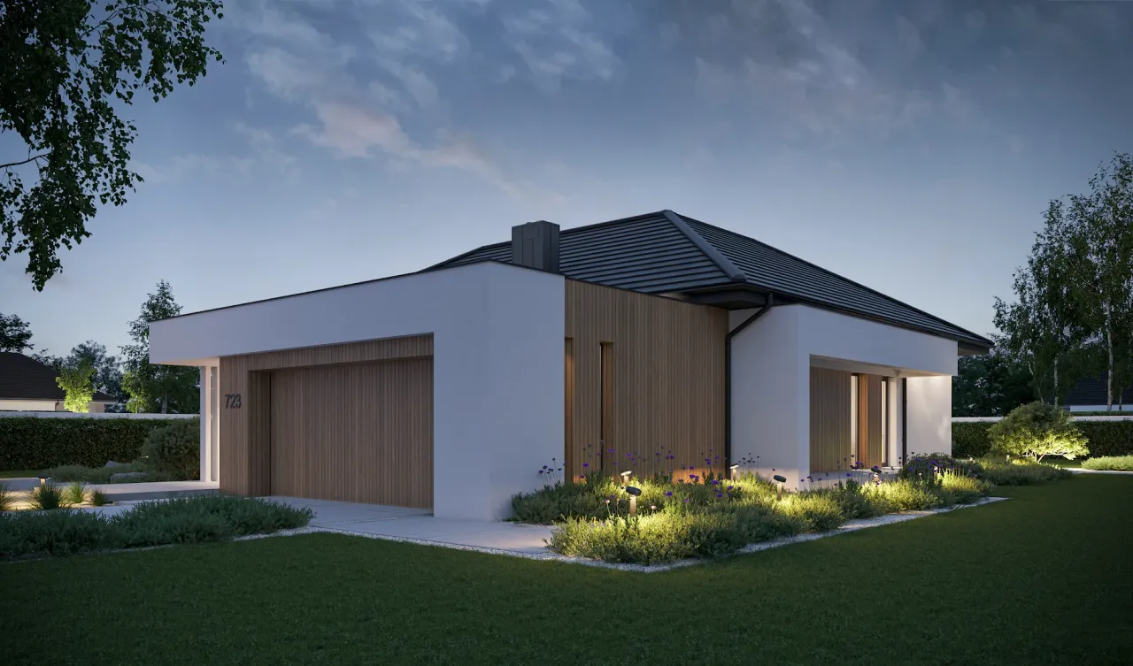 Wypełnij formularz i otrzymaj rysunki w pdf z dokładnymi wymiarami budynku i pomieszczeń (długość, szerokość, wysokość) dla projektu New House 723