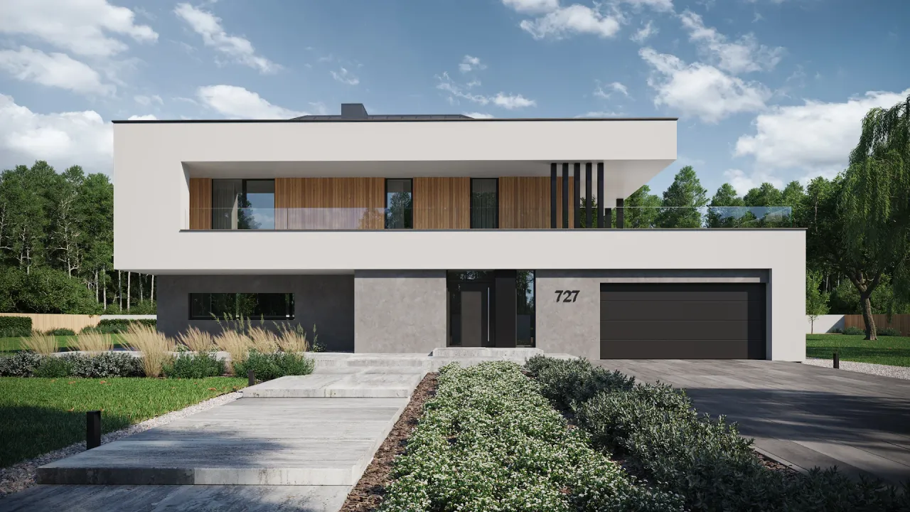 Wypełnij formularz i otrzymaj rysunki w pdf z dokładnymi wymiarami budynku i pomieszczeń (długość, szerokość, wysokość) dla projektu New House 727 w1
