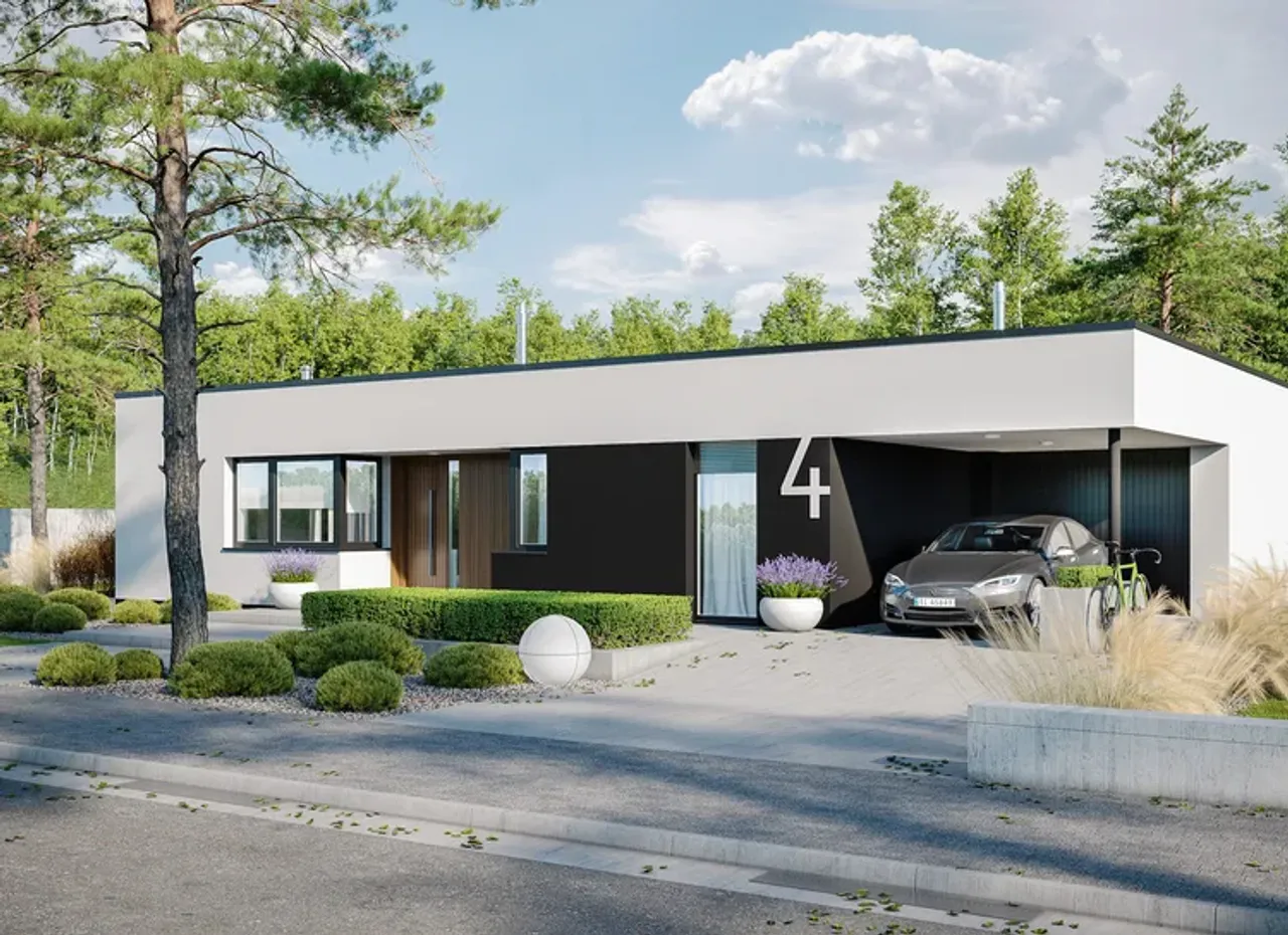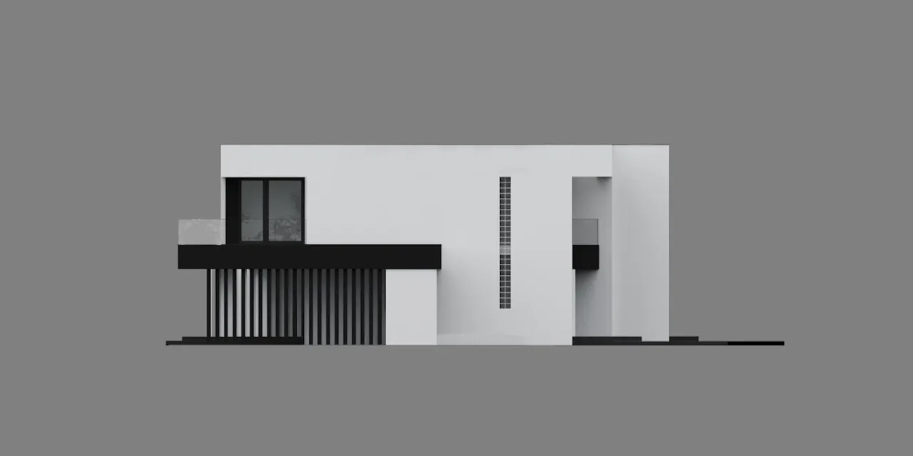 Projekt domu New House 744 D wariant 01 - "Less is more" zachwyca nowoczesnym designem łączącym funkcjonalność z elegancją. Duże przeszklenia w salonie gwarantują doświetlenie całego pomieszczenia, które razem z przyległym tarasem tworzą doskonałe miejsce do rodzinnego wypoczynku. Oryginalne rozwiązania, takie jak otwarta przestrzeń dziennej strefy czy zastosowanie płaskiego dachu, nadają temu projektowi unikalny i modny charakter.