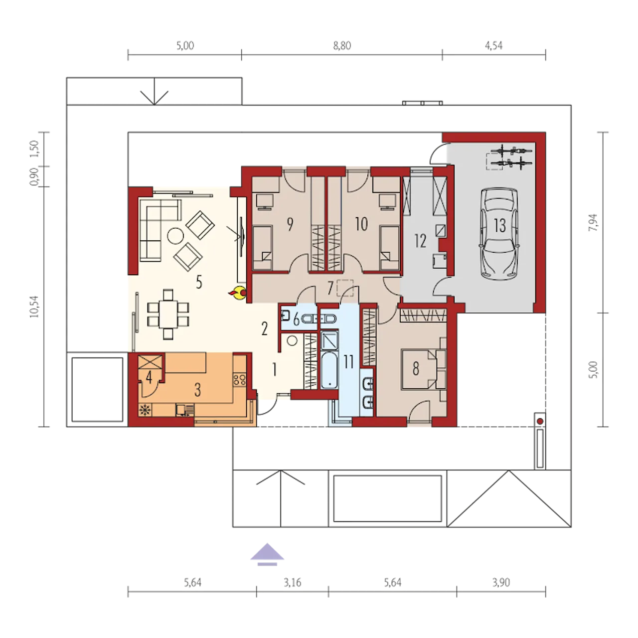 Wypełnij formularz i otrzymaj rysunki w pdf z dokładnymi wymiarami budynku i pomieszczeń (długość, szerokość, wysokość) dla projektu New House 744 D wariant 01