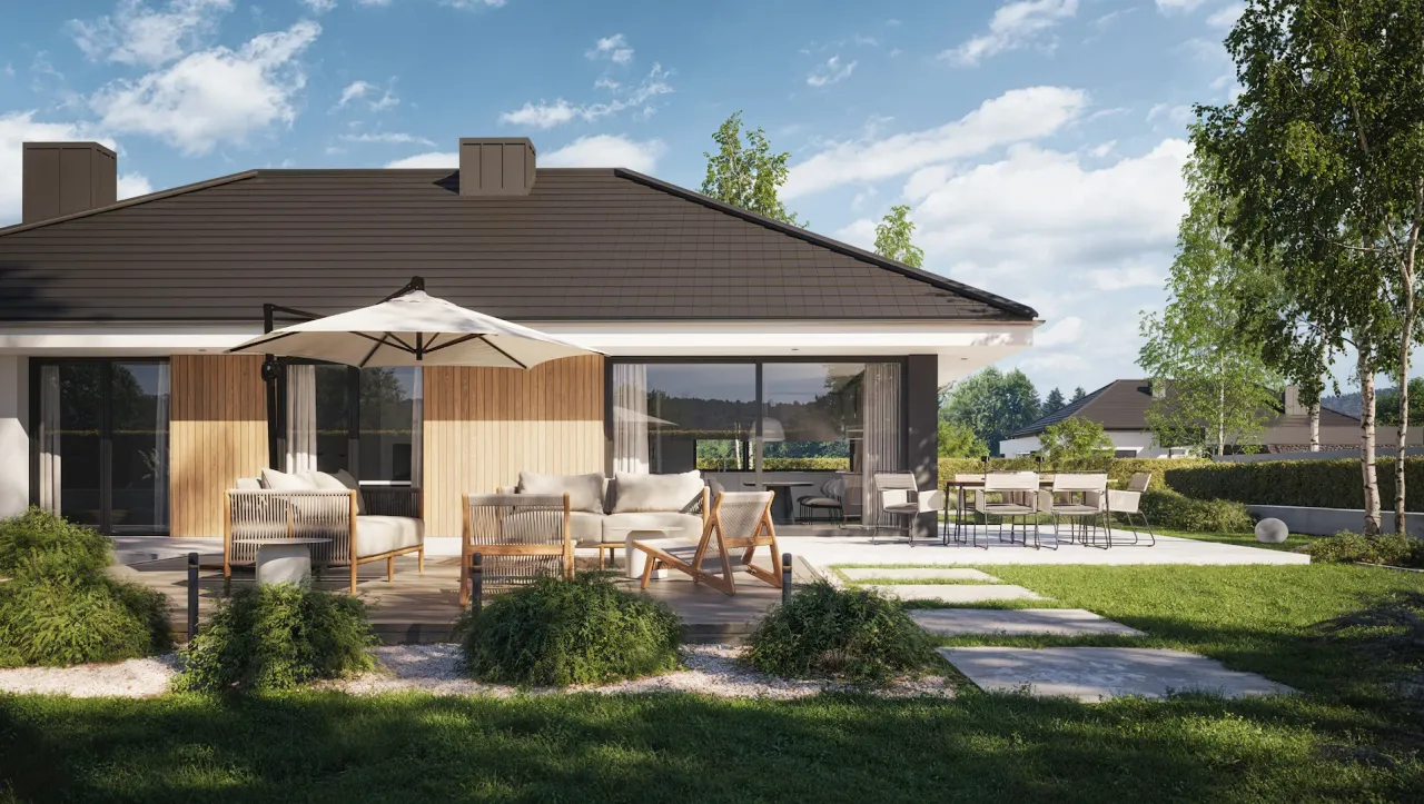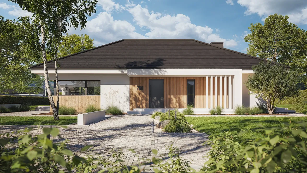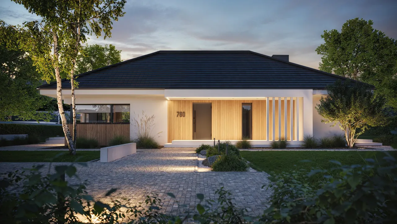 Model New House 760 w1 prezentuje się niezwykle nowocześnie. Jego design od razu przyciąga uwagę, a architektura zachwyca swoim niezwykłym charakterem. Elewacja imponuje swoją prostotą i elegancją, a funkcjonalność wnętrza robi ogromne wrażenie. Przestronne pomieszczenia inspirują i każdy detal został dokładnie przemyślany. Układ wnętrz jest wyjątkowo kreatywny, a styl domu od razu przyciąga wzrok. Starannie zaplanowane rozwiązania zachwycają na każdej płaszczyźnie. Zastanawiam się nad zakupem tego projektu i budową domu.