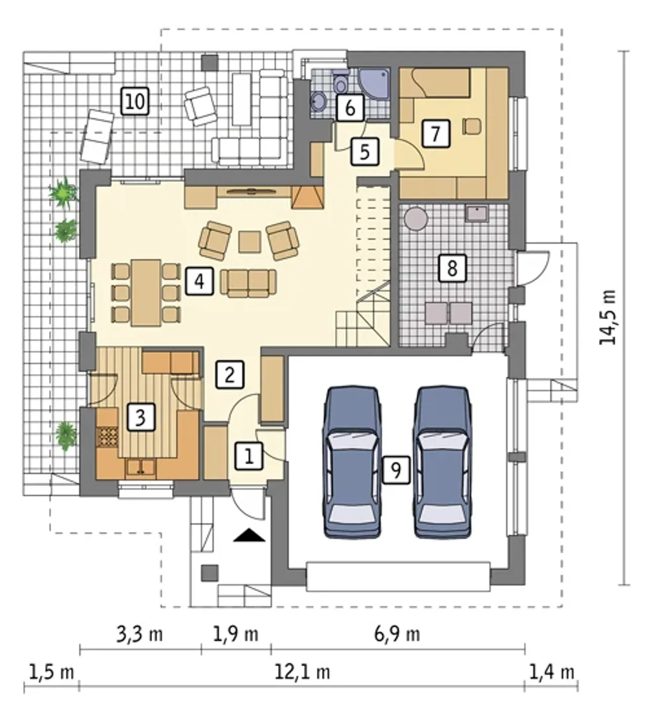 Wypełnij formularz i otrzymaj rysunki w pdf z dokładnymi wymiarami budynku i pomieszczeń (długość, szerokość, wysokość) dla projektu Niepospolity - M197