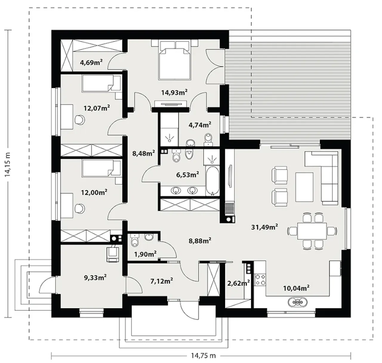 Szerokość budynku 14.75 m |