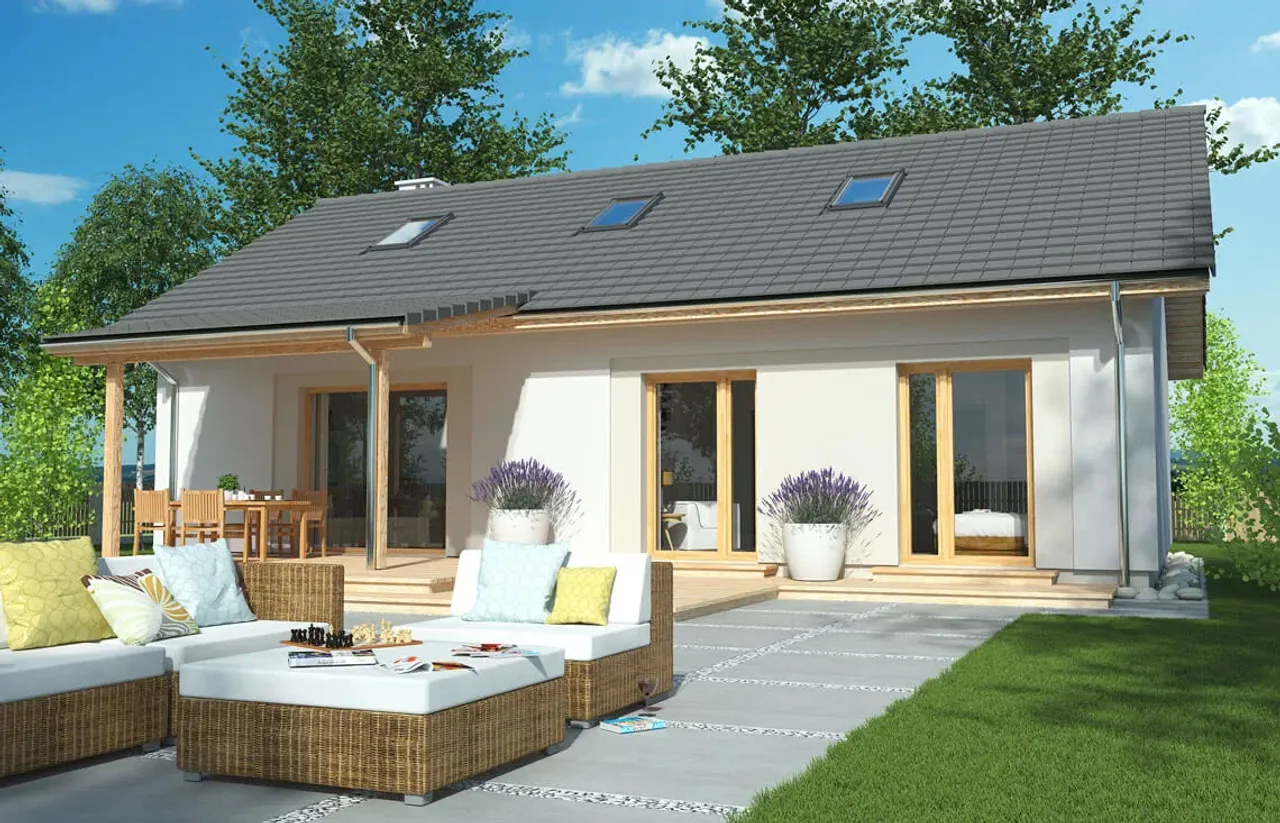 Kupując projekt w technologii murowanej powinieneś budować dom murowany. Zupełna zmiana technologii na szkieletową wymaga przeprojektowania całego budynku ( zmieniają się obciążenia, fundamenty, konstrukcja dachu). Wydamy zgodę na takie przeprojektowanie jednak wiążę się to z dużymi kosztami. Istnieją firmy wykonawcze, które podejmują się zmiany technologii budowy bezpłatnie przy skorzystaniu z ich usług wykonawczych. Zdarza się, że pracownia architektoniczna przygotowuje warianty konkretnego projektu przewidując także inne technologie. Prosimy o sprawdzenie czy istnieje poszukiwana wersja projektu, w zakładce - warianty projektu.