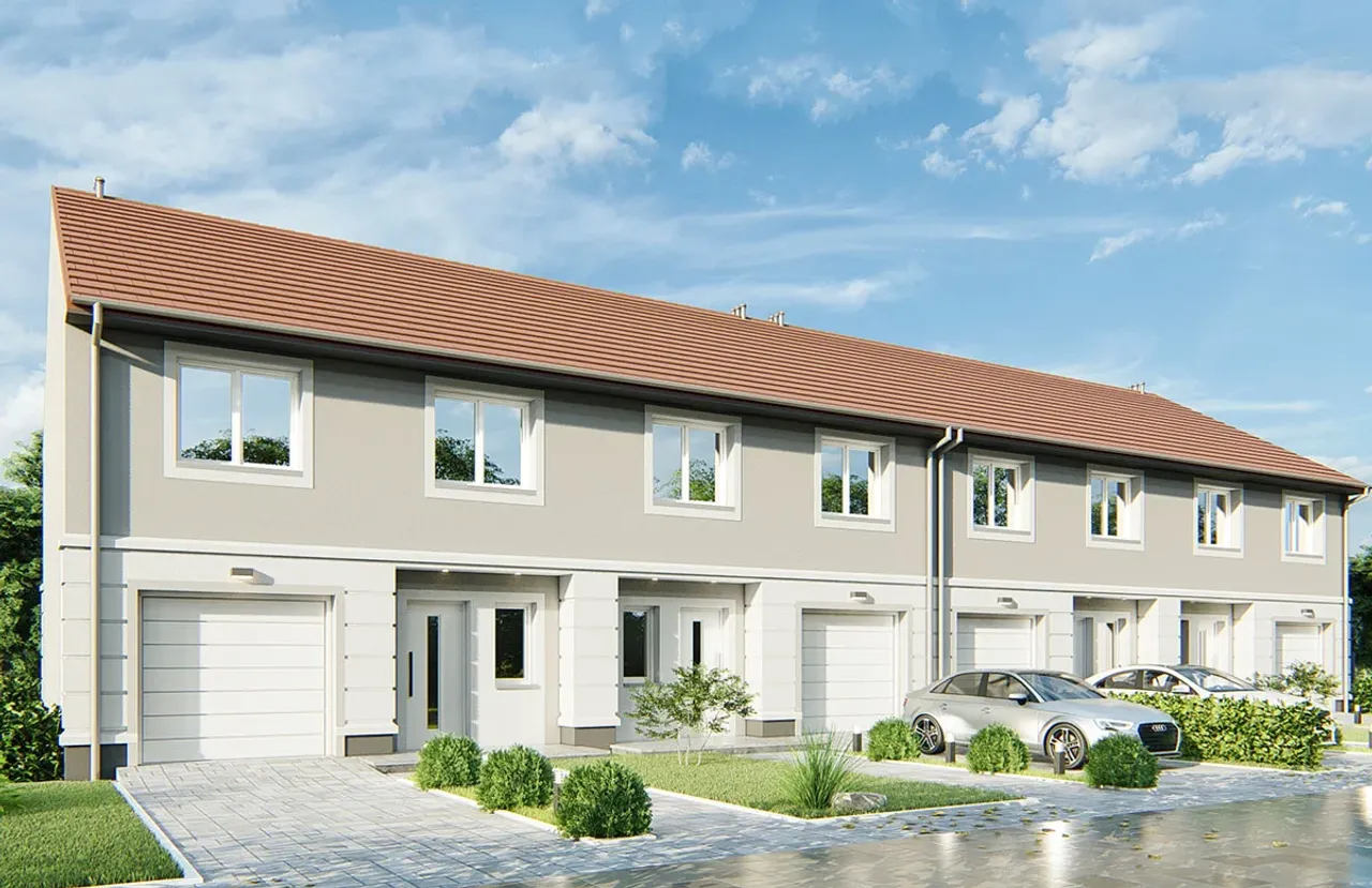 Projekt domu Norbert 6 - segment lewy to prawdziwa perła wśród projektów domów szeregowych, idealnie wpisująca się w potrzeby współczesnej rodziny szukającej elegancji oraz funkcjonalności. Harmonijne połączenie nowoczesnej architektury z praktycznym rozkładem przestrzeni sprawia, że każdy centymetr tego domu został zaprojektowany z myślą o komforcie jego mieszkańców. Zachwycająca elewacja z jasnych tynków i elementów drewnopodobnych dodaje całemu budynkowi lekkości i nowoczesnego charakteru, podkreślając jego oryginalność. Wnętrze domu, zaprojektowane z dbałością o detale, oferuje przestrzeń, która jest zarówno funkcjonalna, jak i inspirująca, idealna do życia, pracy i relaksu. To więcej niż dom; to przestrzeń, gdzie każda sekunda spędzona z bliskimi staje się wyjątkowa.