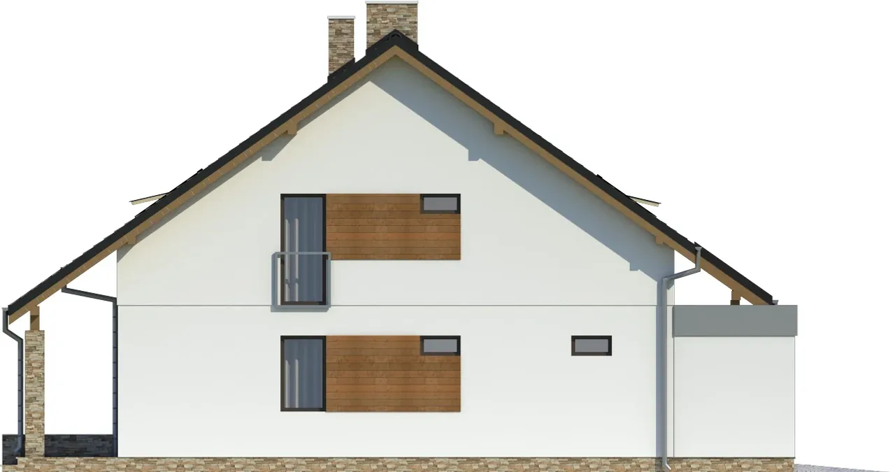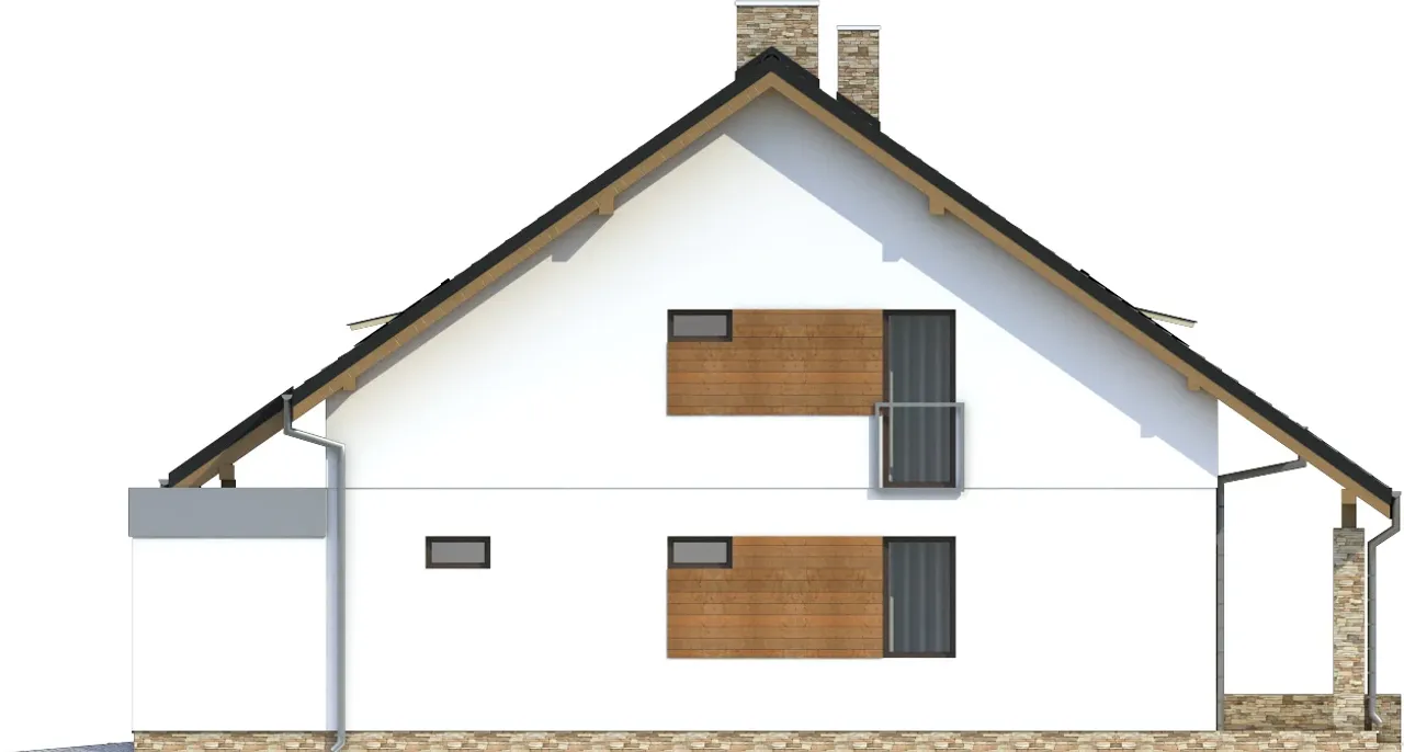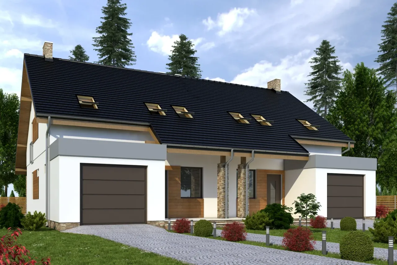 Ciekawa propozycja dla osób ceniących nowoczesne i praktyczne rozwiązania. Projekt wydaje się zgrabny i funkcjonalny. Dodatkowy atut w postaci garażu.