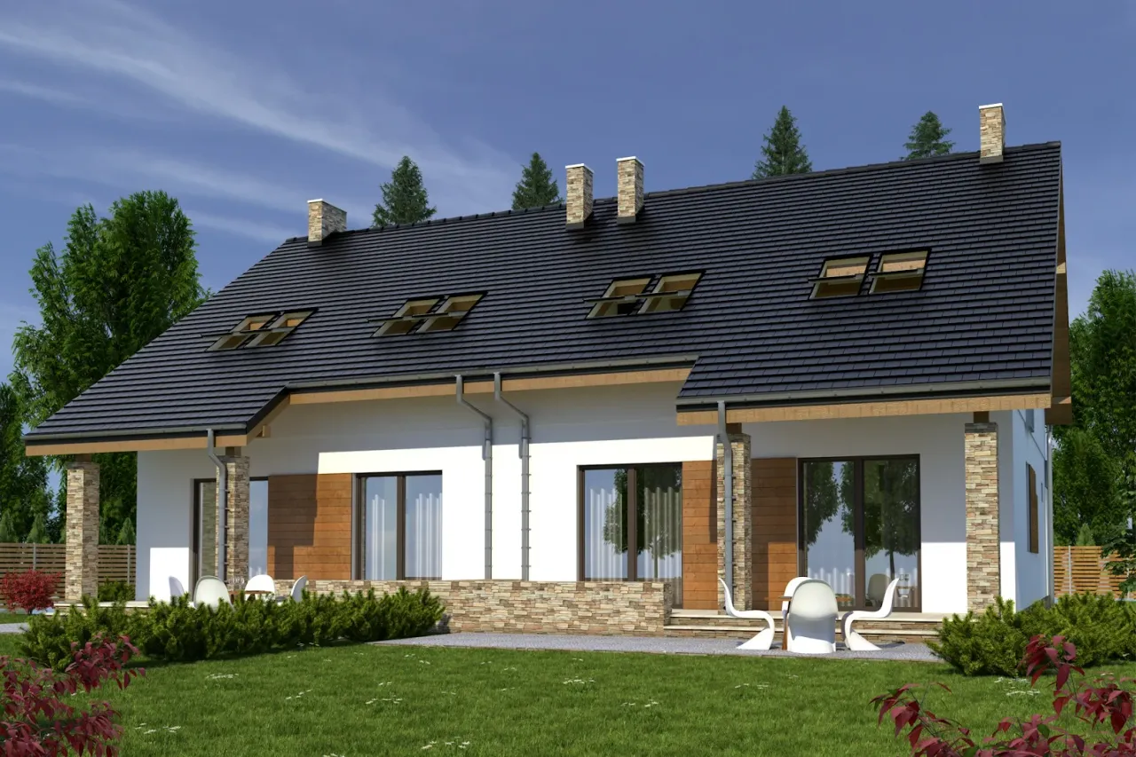 Kupując projekt w technologii murowanej powinieneś budować dom murowany. Zupełna zmiana technologii na szkieletową wymaga przeprojektowania całego budynku ( zmieniają się obciążenia, fundamenty, konstrukcja dachu). Wydamy zgodę na takie przeprojektowanie jednak wiążę się to z dużymi kosztami. Istnieją firmy wykonawcze, które podejmują się zmiany technologii budowy bezpłatnie przy skorzystaniu z ich usług wykonawczych. Zdarza się, że pracownia architektoniczna przygotowuje warianty konkretnego projektu przewidując także inne technologie. Prosimy o sprawdzenie czy istnieje poszukiwana wersja projektu, w zakładce - warianty projektu.
