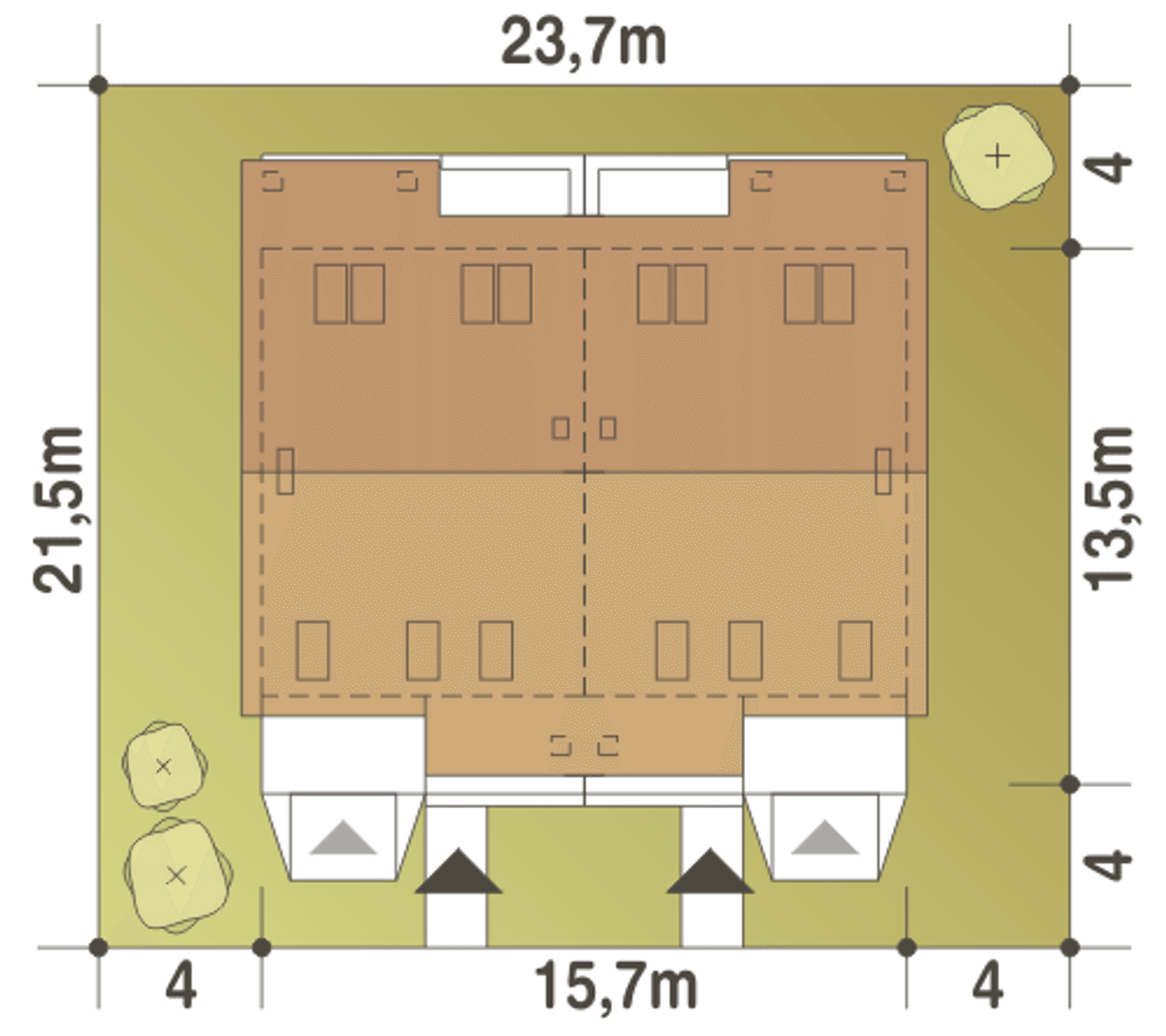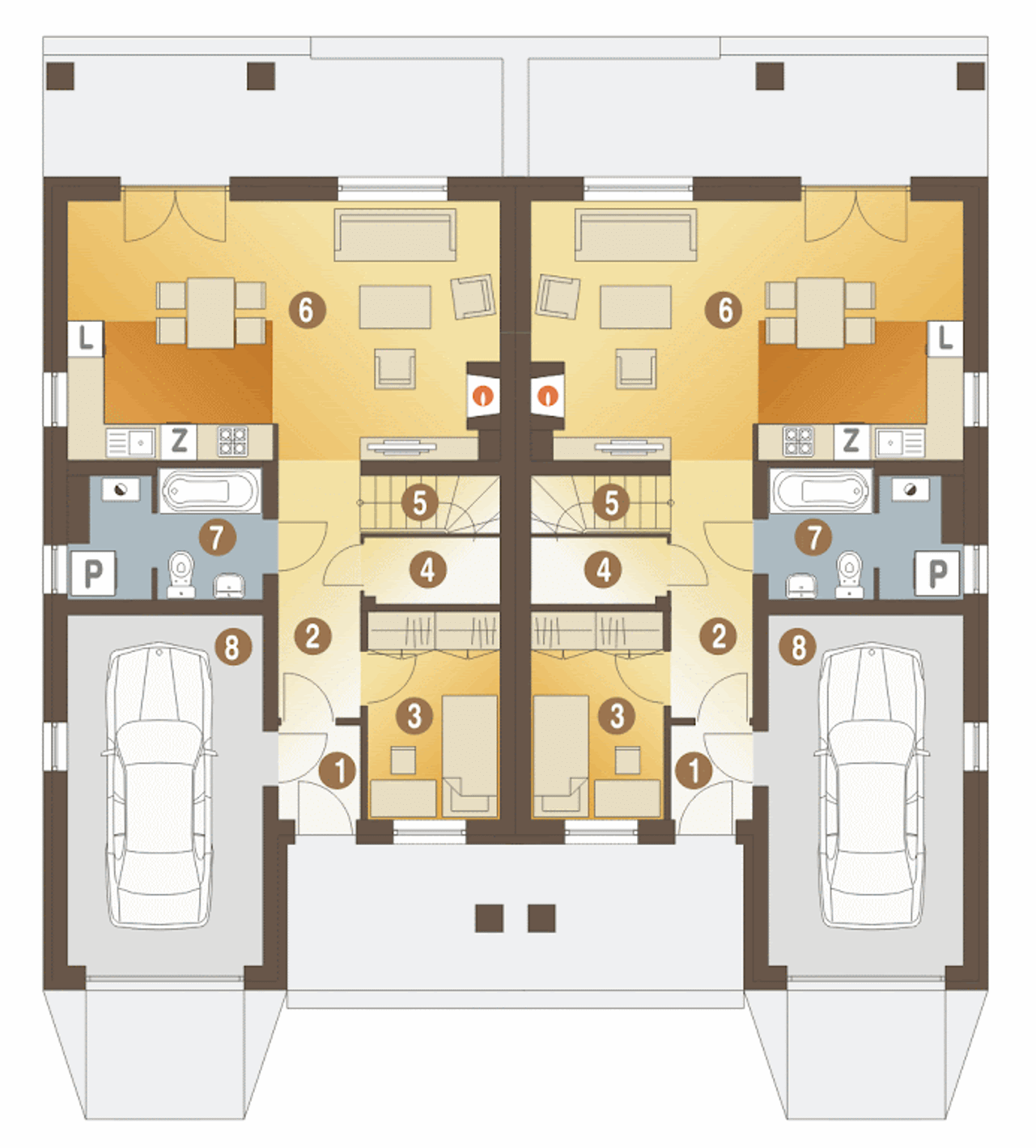 Wypełnij formularz i otrzymaj rysunki w pdf z dokładnymi wymiarami budynku i pomieszczeń (długość, szerokość, wysokość) dla projektu Norbert z garażem 1-st. bliźniak A-BL2