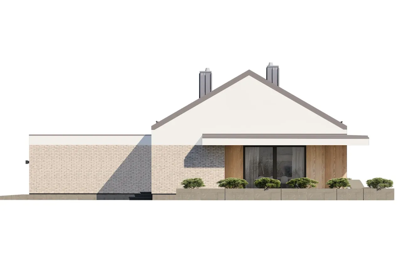 Dom parterowy Nori 2 to idealny wybór na działki z dojazdem od południa lub zachodu, gdzie kalenica pozostaje równoległa do drogi. Przejrzysty rozkład pomieszczeń, nowoczesna bryła, niska linia dachu i opcja dwóch sposobów ogrzewania (gaz oraz paliwo stałe) znacząco podnoszą funkcjonalność inwestycji.