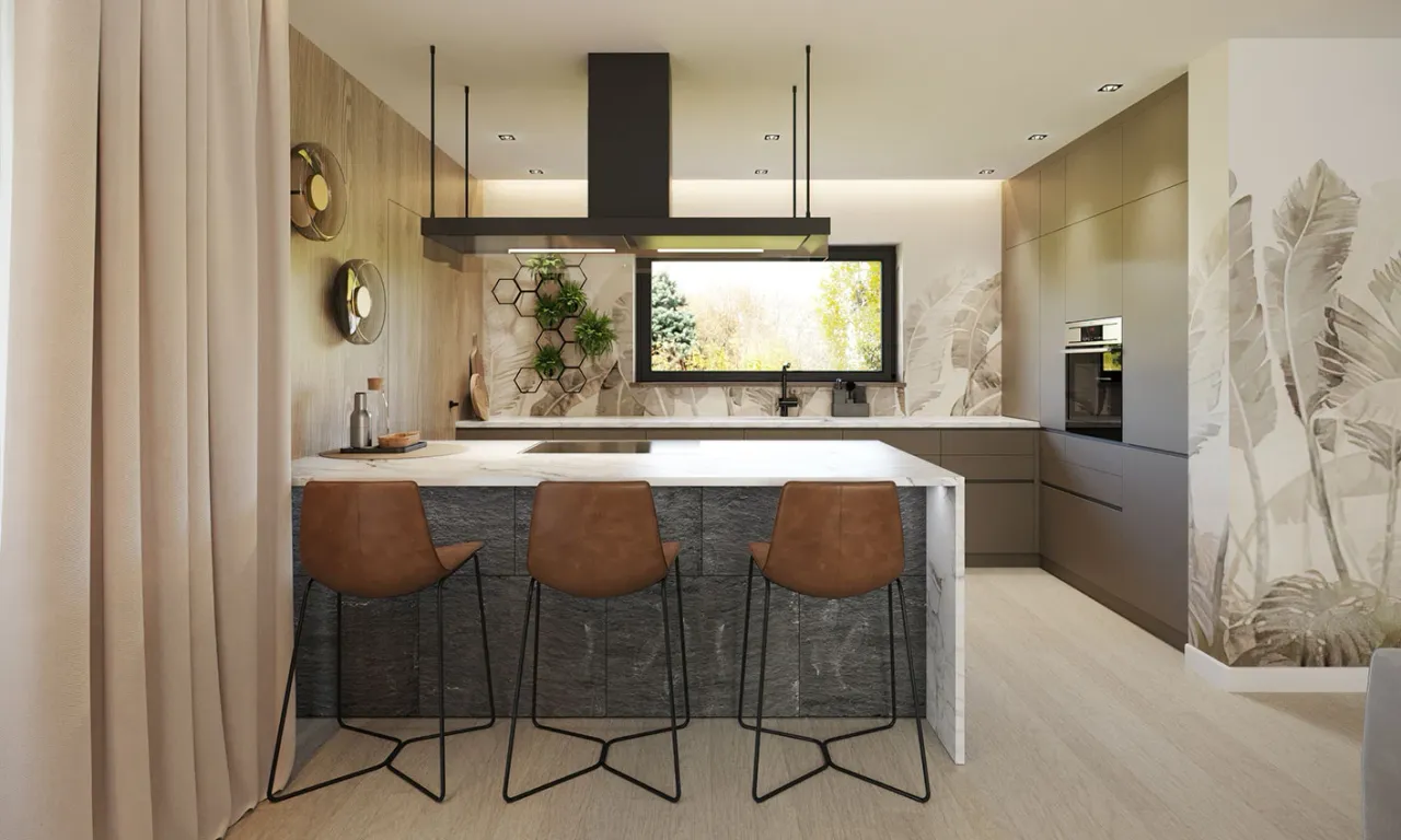Wyobraź sobie nowoczesny dom jednorodzinny w kształcie litery L z dużym, wygodnym garażem, przestronnym tarasem i starannie przemyślanym układem wnętrza. Projekt domu Nori 2 znakomicie wpisze się w potrzeby rodzin szukających połączenia funkcjonalności, elegancji i komfortowego użytkowania na co dzień. To propozycja, która ułatwia życie i podnosi codzienną wygodę mieszkańców.