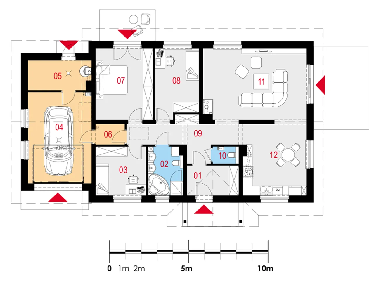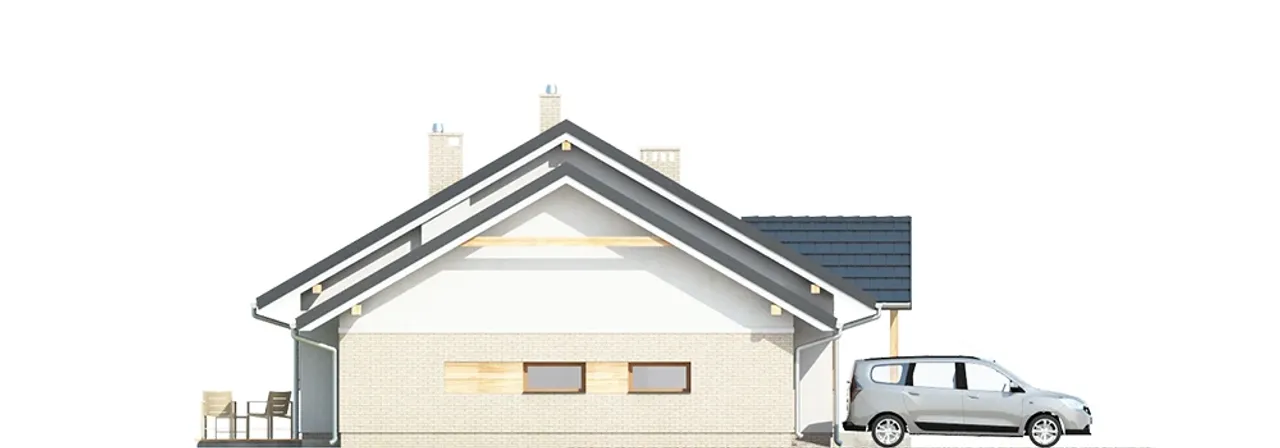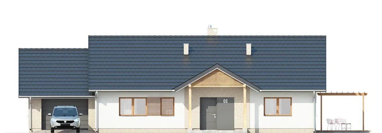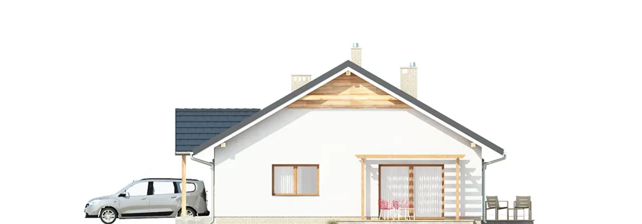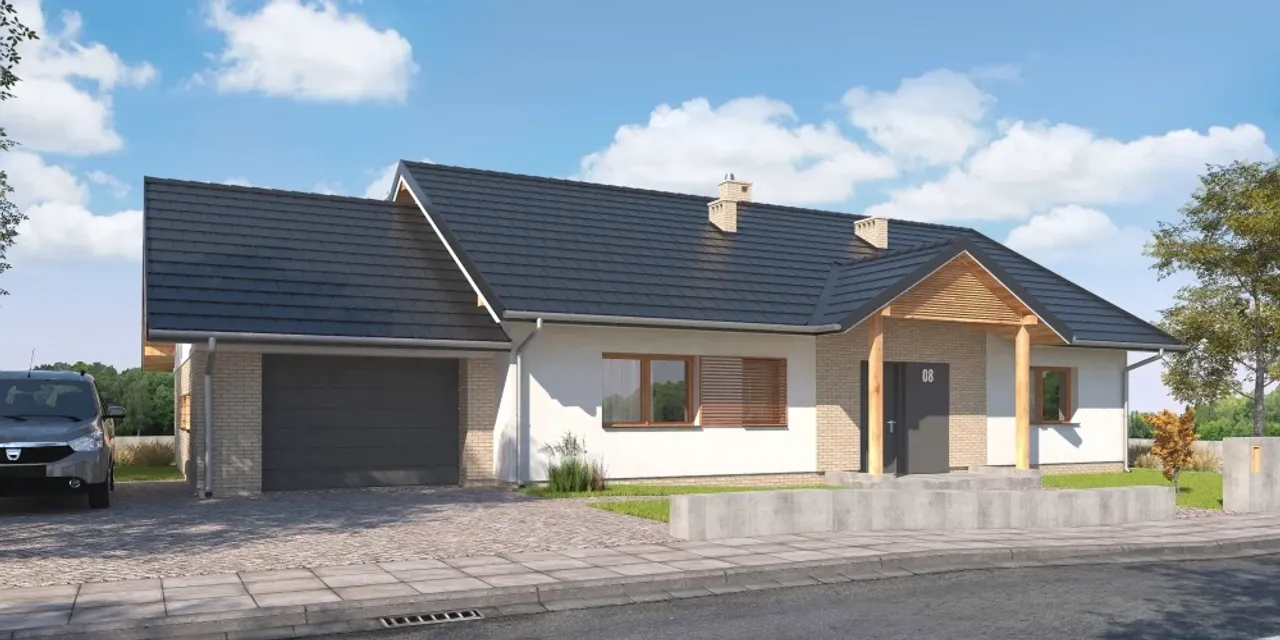 Projekt detalicznie uwzględnia wygodę i bezpieczeństwo domowników: okna PVC z roletami zewnętrznymi i nowoczesna brama garażowa dbają o komfort i prywatność. Wnętrze podzielono na cztery pokoje, co daje swobodę aranżacji i wygodę życia nawet dla większej rodziny. Dom zostanie dopasowany do różnych typów działek, zwłaszcza tych z kalenicą równoległą do drogi. Technologia budowy oraz materiały pozwalają na wybór pieca gazowego lub na paliwo stałe - swoboda ogrzewania zgodnie z indywidualnymi preferencjami.