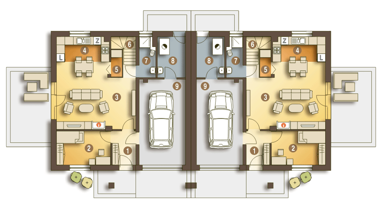 Wypełnij formularz i otrzymaj rysunki w pdf z dokładnymi wymiarami budynku i pomieszczeń (długość, szerokość, wysokość) dla projektu Nowinka III z garażem 1-st. bliźniak A-BL1