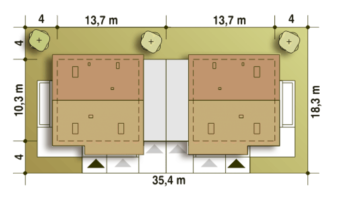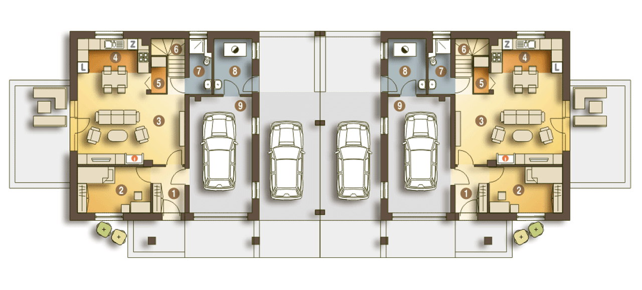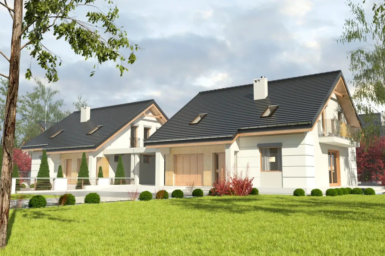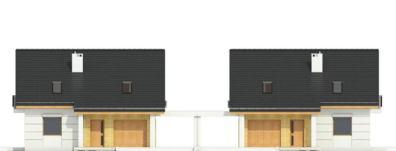 Wypełnij formularz i otrzymaj rysunki w pdf z dokładnymi wymiarami budynku i pomieszczeń (długość, szerokość, wysokość) dla projektu Nowinka III z garażem i wiatą bliźniak A1-BL1