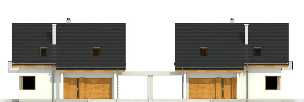 Wypełnij formularz i otrzymaj rysunki w pdf z dokładnymi wymiarami budynku i pomieszczeń (długość, szerokość, wysokość) dla projektu Nowinka IV z garażem i wiatą bliźniak A1-BL1