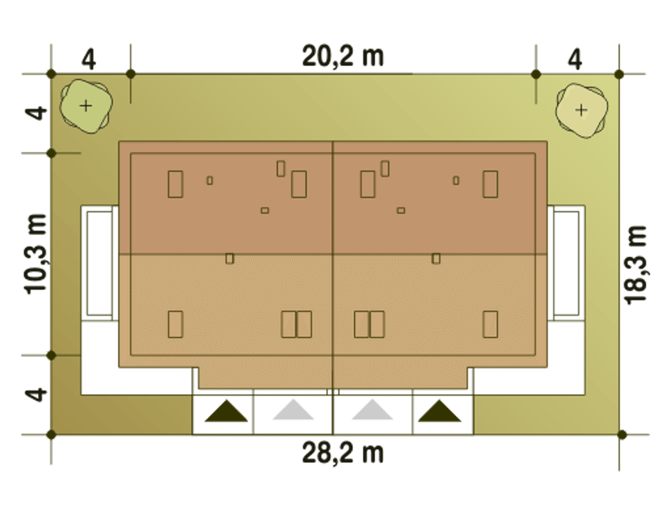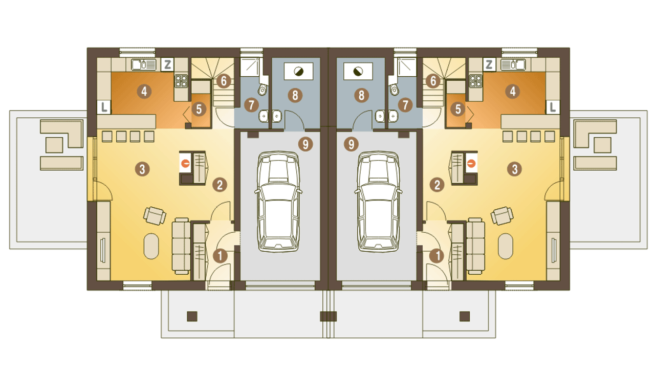 Wypełnij formularz i otrzymaj rysunki w pdf z dokładnymi wymiarami budynku i pomieszczeń (długość, szerokość, wysokość) dla projektu Nowinka VI z garażem 1-st. bliźniak A-BL1