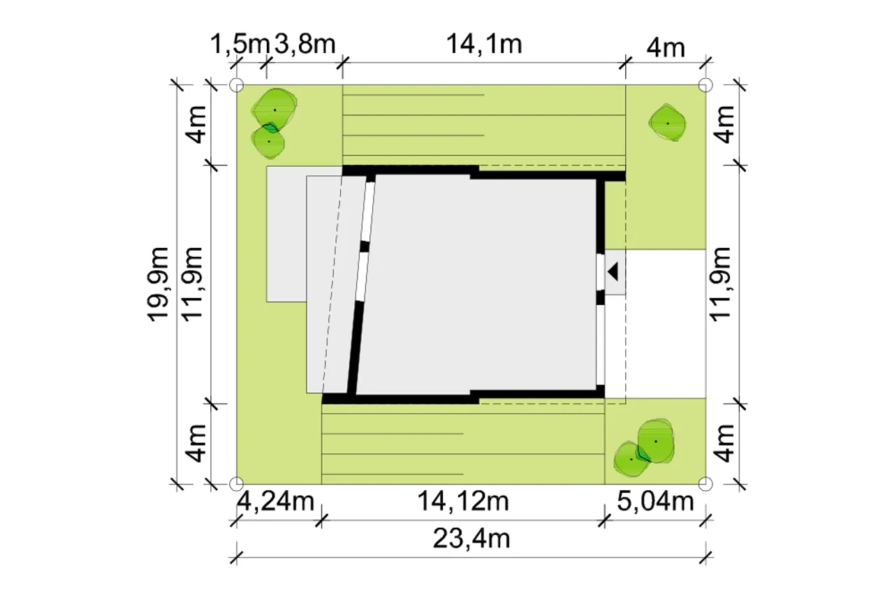 Wypełnij formularz i otrzymaj rysunki w pdf z dokładnymi wymiarami budynku i pomieszczeń (długość, szerokość, wysokość) dla projektu Obliquus I G1