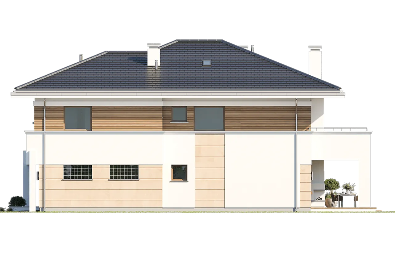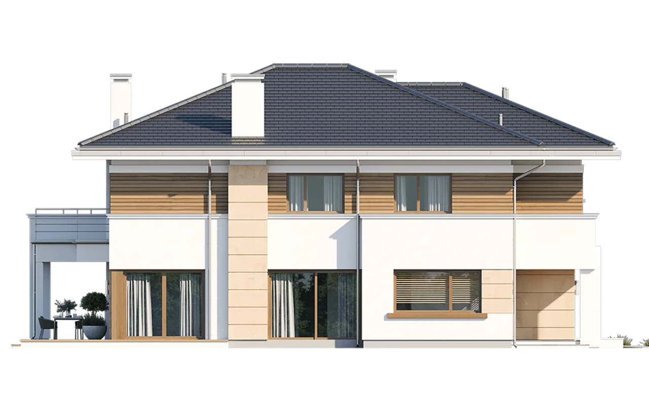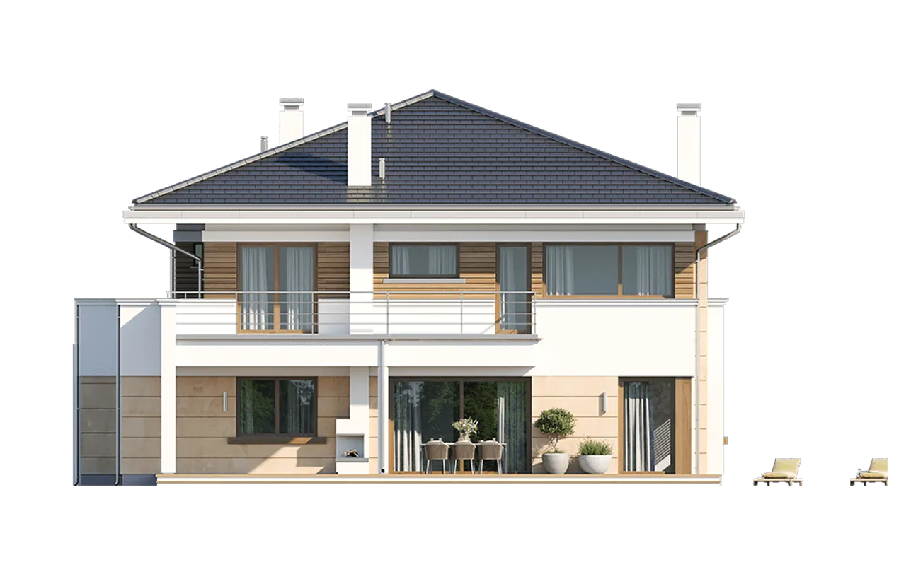 Ta propozycja powstała z myślą o rodzinach ceniących wygodę i prestiż. Piętrowy układ daje aż 7 funkcjonalnych pokoi, co umożliwia realizację indywidualnych potrzeb mieszkańców - od pracy zdalnej, przez strefę relaksu, po domową siłownię. Nowoczesna technologia murowana i solidne fundamenty z betonowych ław oraz ścian fundamentowych z bloczków sprzyjają pewności inwestycji.