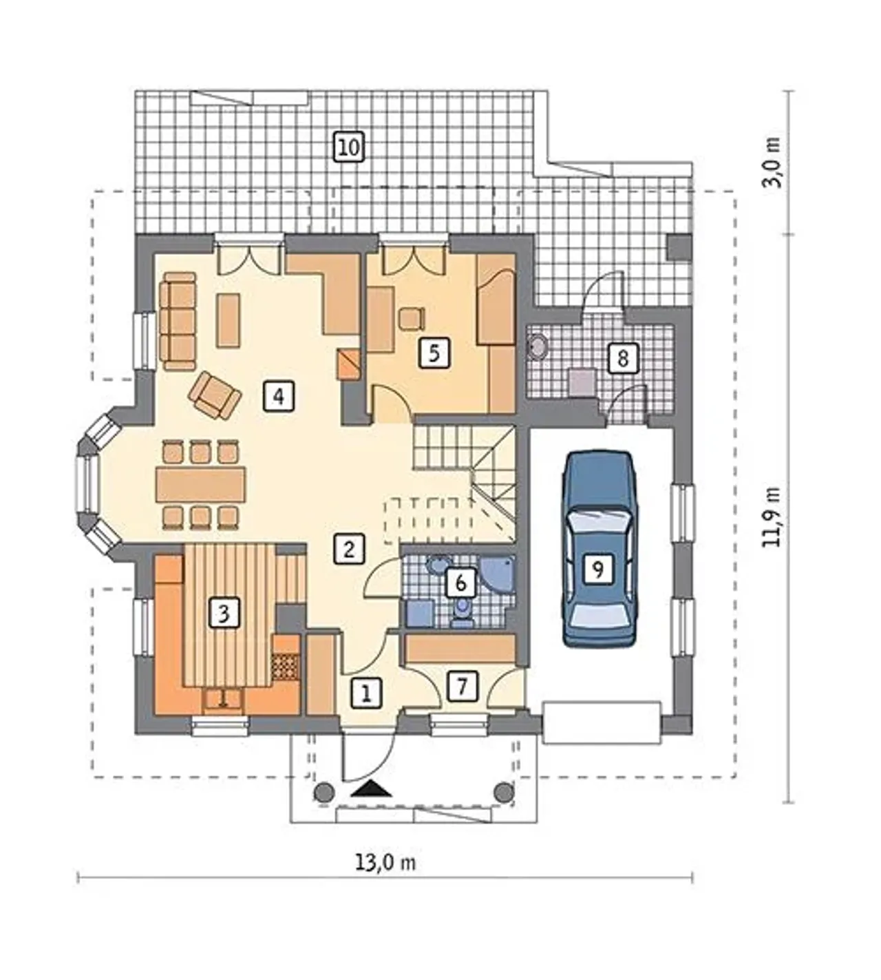Wypełnij formularz i otrzymaj rysunki w pdf z dokładnymi wymiarami budynku i pomieszczeń (długość, szerokość, wysokość) dla projektu Ogród o zmierzchu - wariant I - M76a