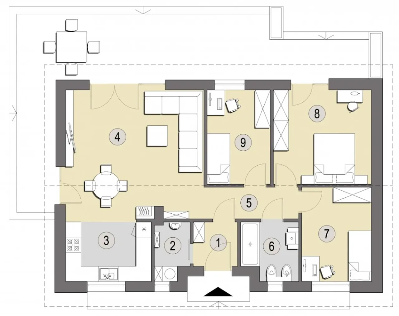 Wypełnij formularz i otrzymaj rysunki w pdf z dokładnymi wymiarami budynku i pomieszczeń (długość, szerokość, wysokość) dla projektu Okinawa A