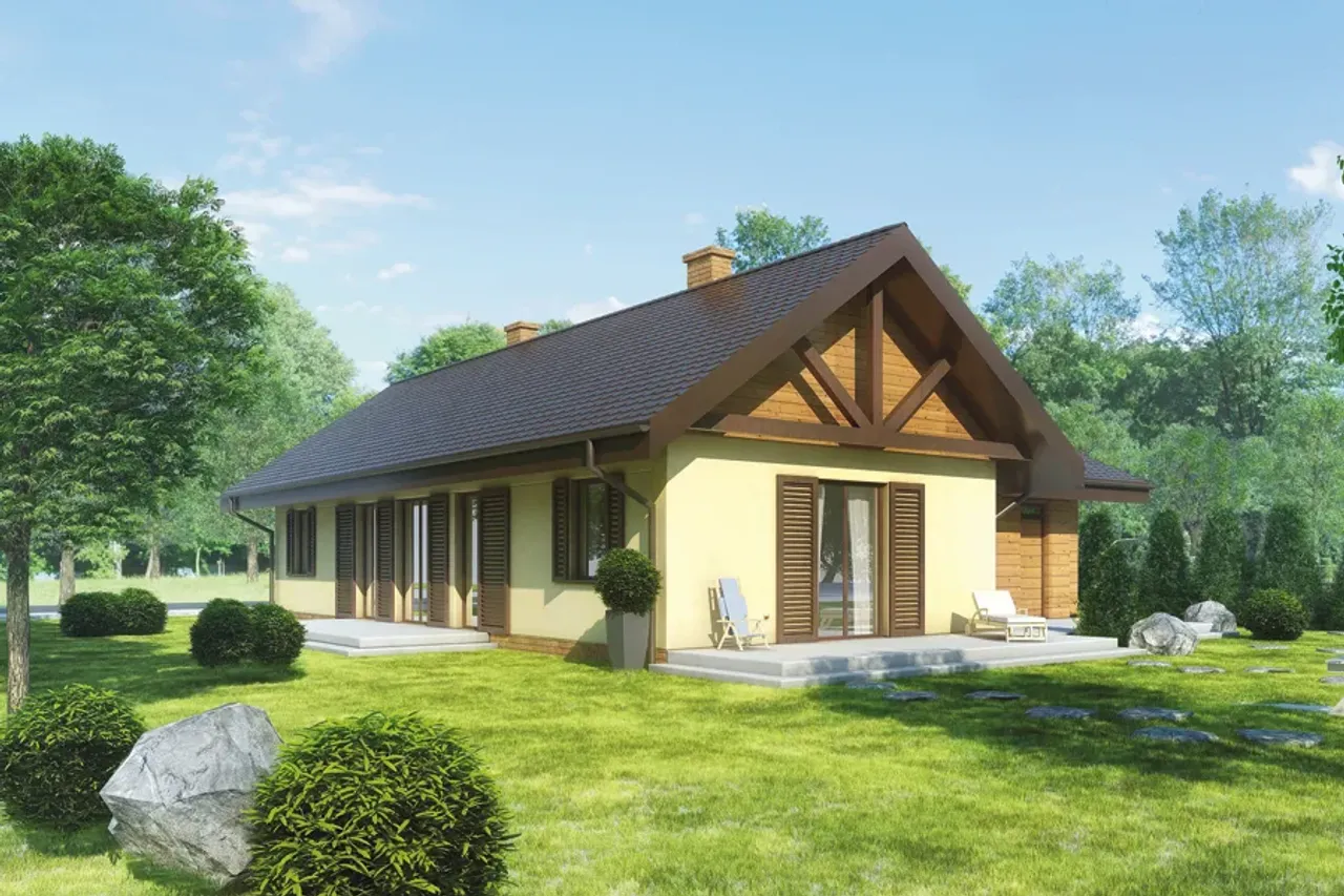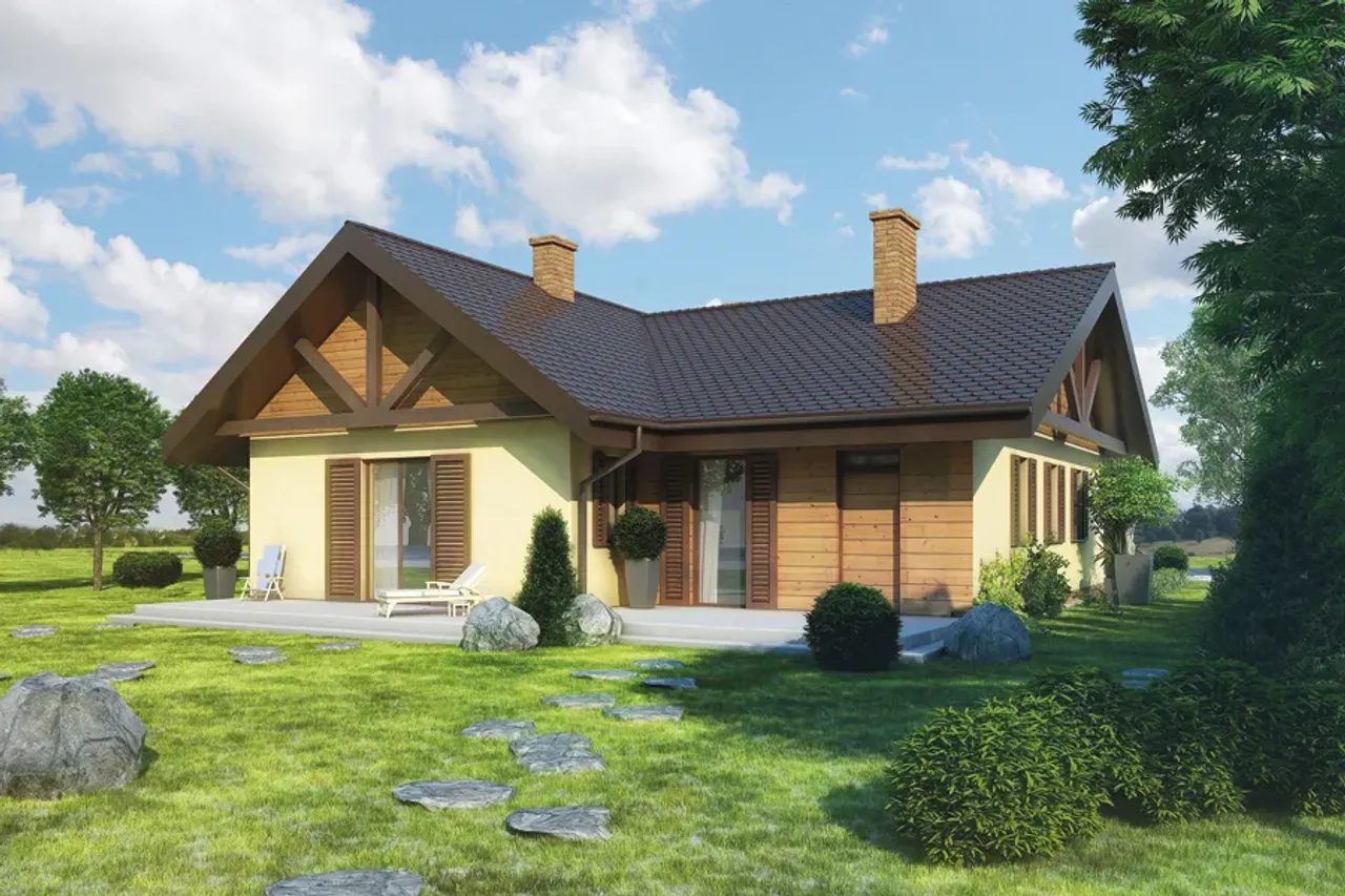 Kupując projekt w technologii murowanej powinieneś budować dom murowany. Zupełna zmiana technologii na szkieletową wymaga przeprojektowania całego budynku ( zmieniają się obciążenia, fundamenty, konstrukcja dachu). Wydamy zgodę na takie przeprojektowanie jednak wiążę się to z dużymi kosztami. Istnieją firmy wykonawcze, które podejmują się zmiany technologii budowy bezpłatnie przy skorzystaniu z ich usług wykonawczych. Zdarza się, że pracownia architektoniczna przygotowuje warianty konkretnego projektu przewidując także inne technologie. Prosimy o sprawdzenie czy istnieje poszukiwana wersja projektu, w zakładce - warianty projektu.