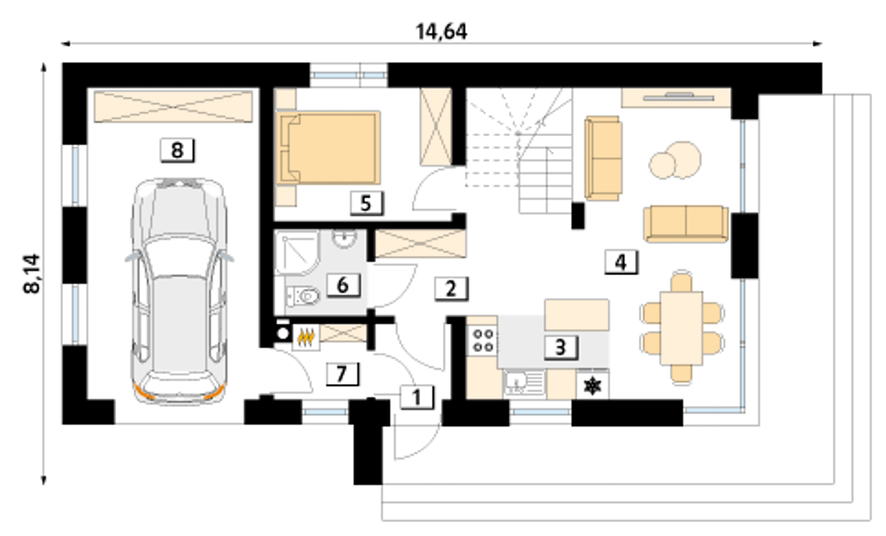 Wypełnij formularz i otrzymaj rysunki w pdf z dokładnymi wymiarami budynku i pomieszczeń (długość, szerokość, wysokość) dla projektu Okruszek
