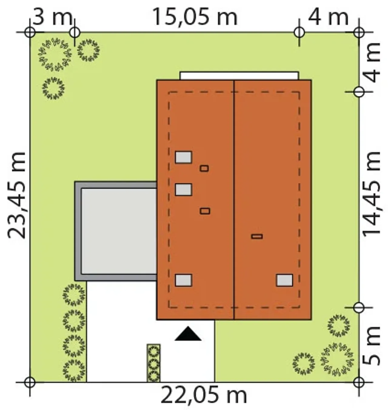 Długość działki 23.45 m |
