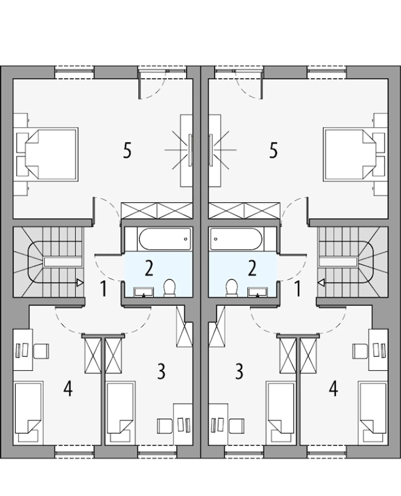 Rzuty gotowego projektu domu Olaf 2 - bliźniak L.LL