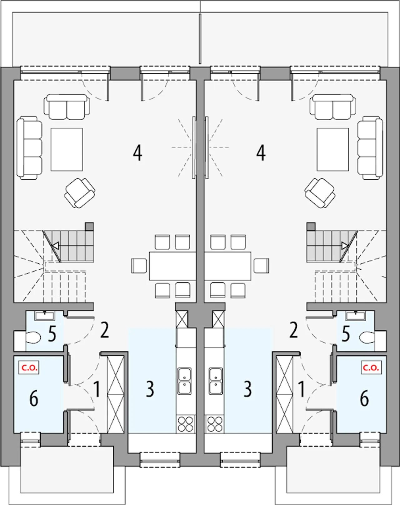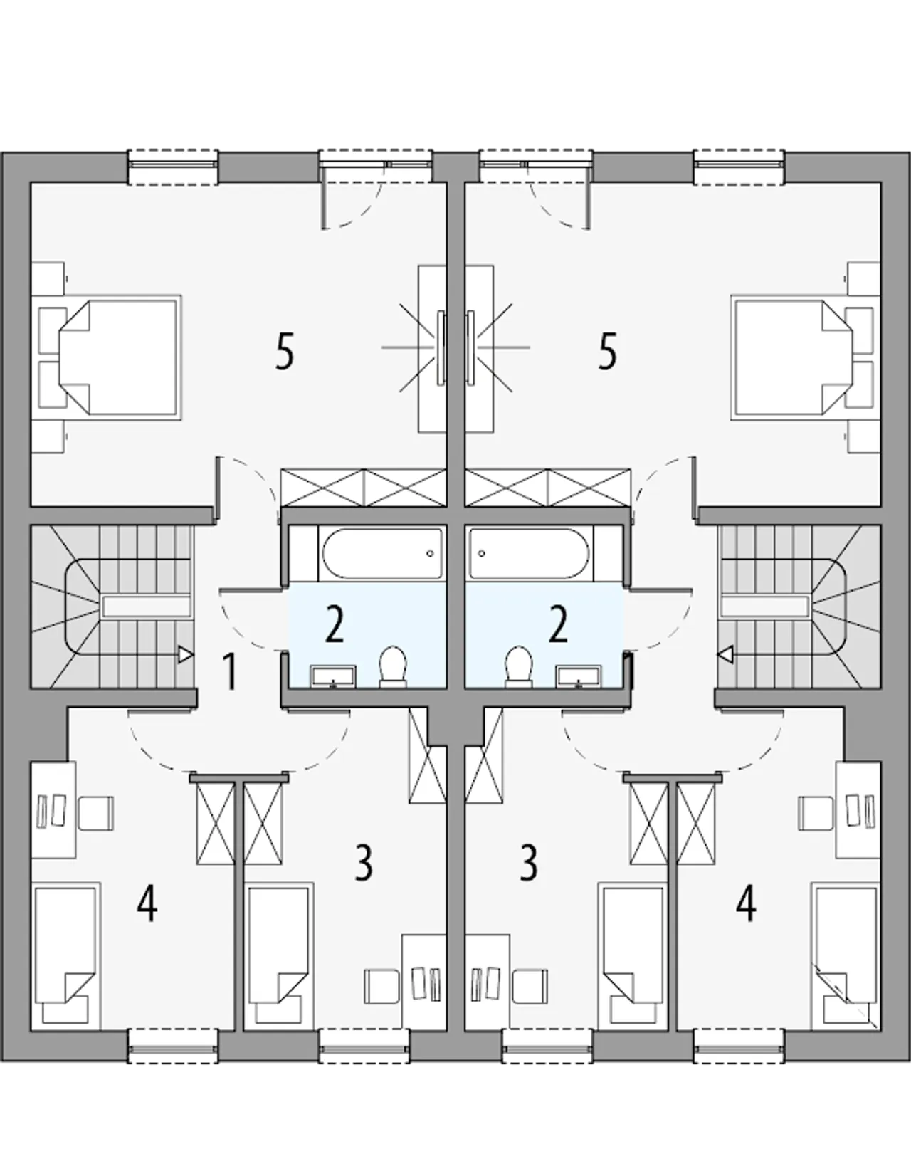 Wypełnij formularz i otrzymaj rysunki w pdf z dokładnymi wymiarami budynku i pomieszczeń (długość, szerokość, wysokość) dla projektu Olaf 2 - dwulokalowy LLL