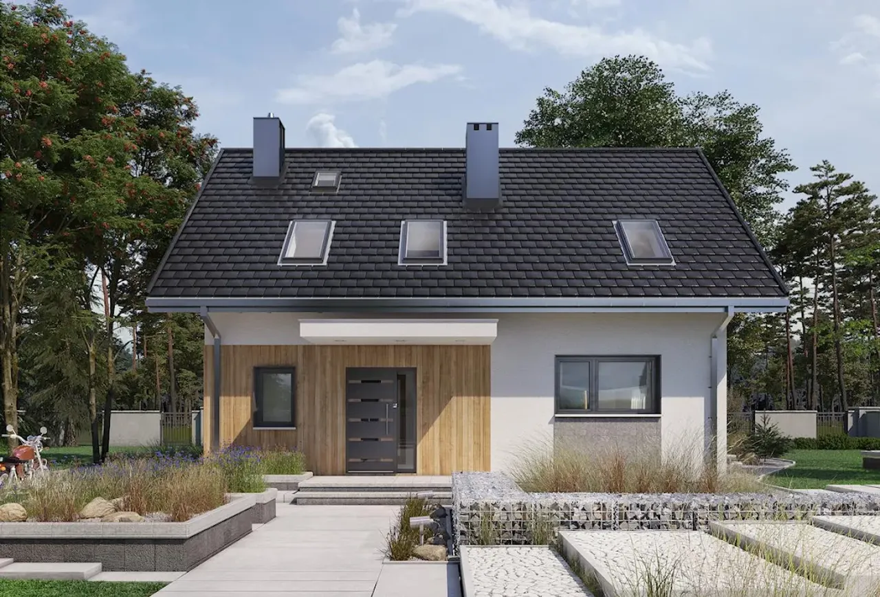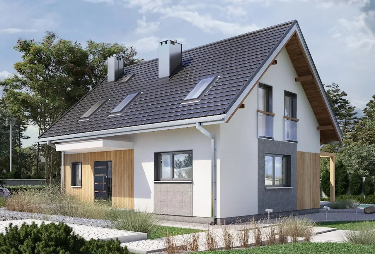 - elewacje - pokazują dokładny wygląd domu od frontu, z tyłu i z boków