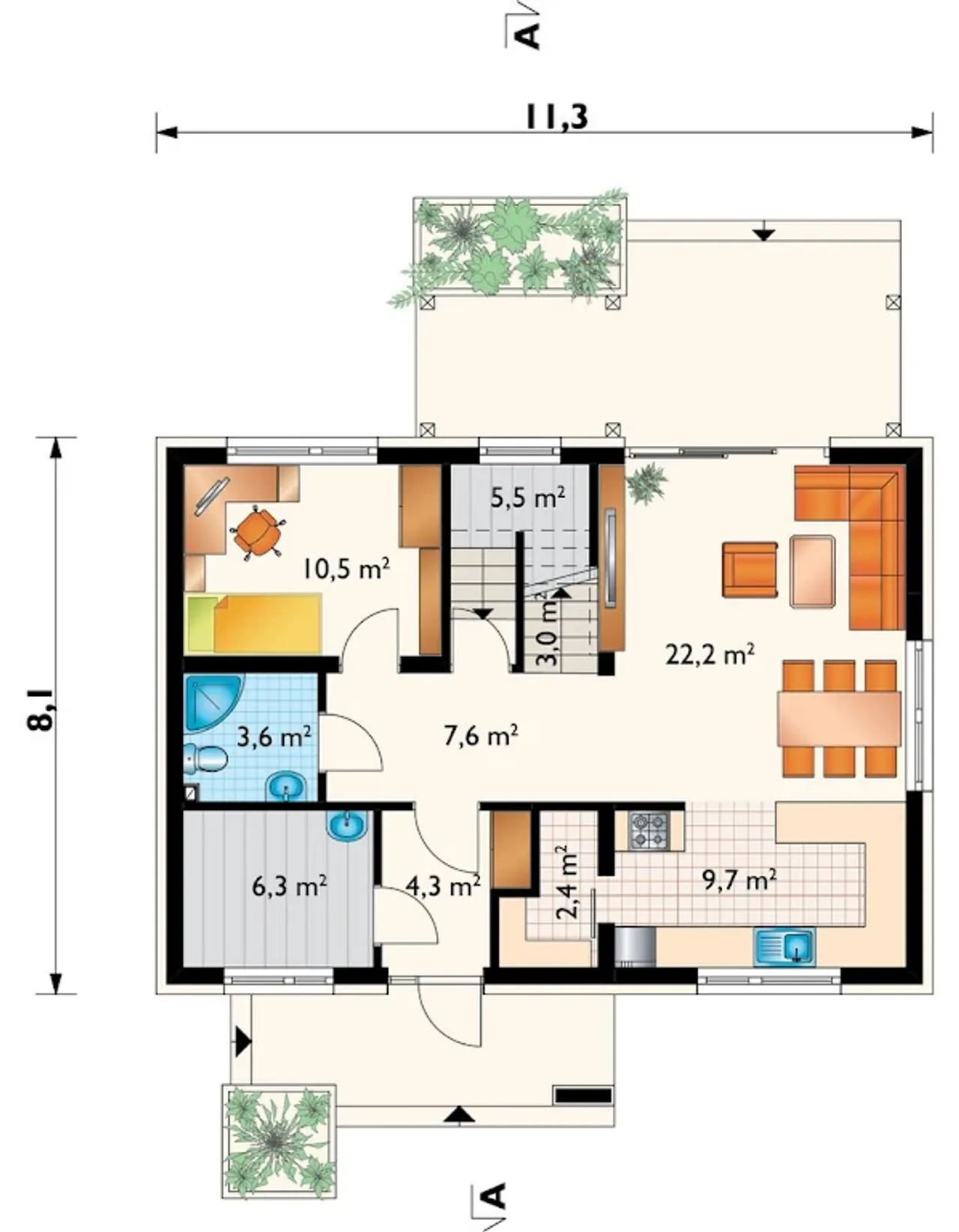 9. Pokój dzienny z jadalnią | 22,20 m² |