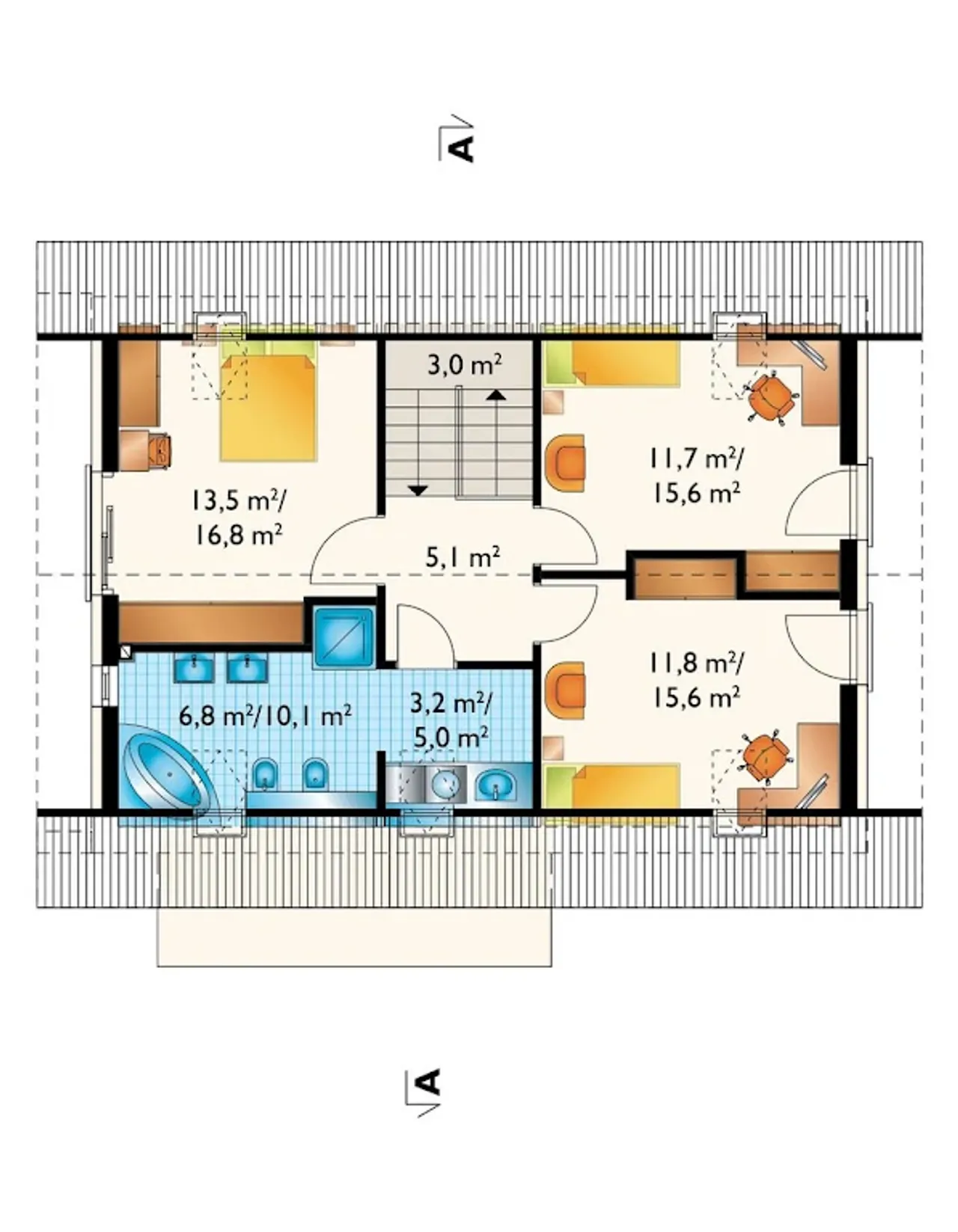 - elewacje - pokazują dokładny wygląd domu od frontu, z tyłu i z boków
