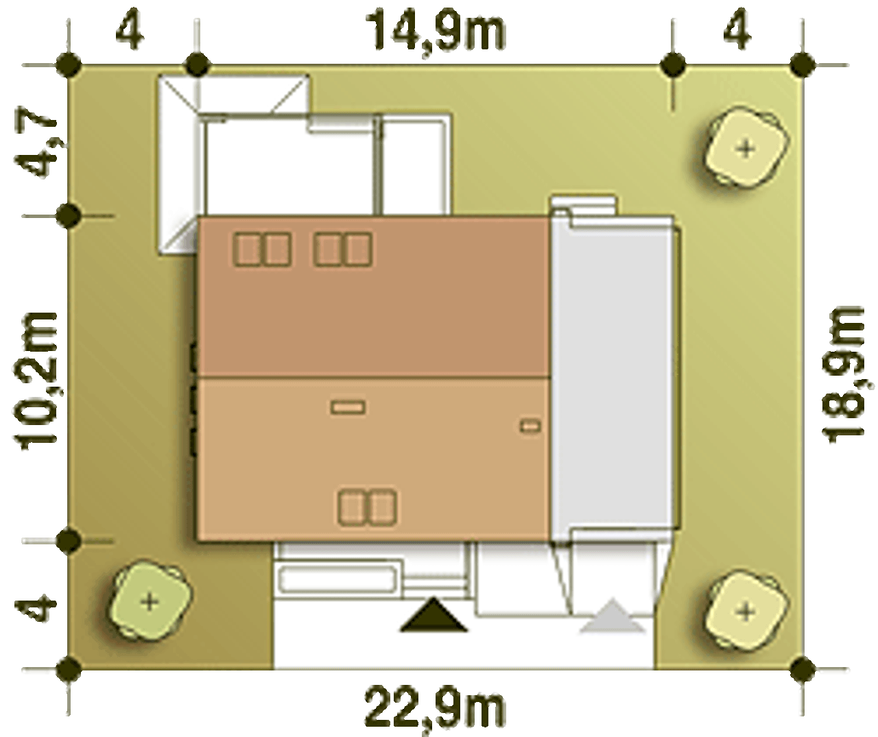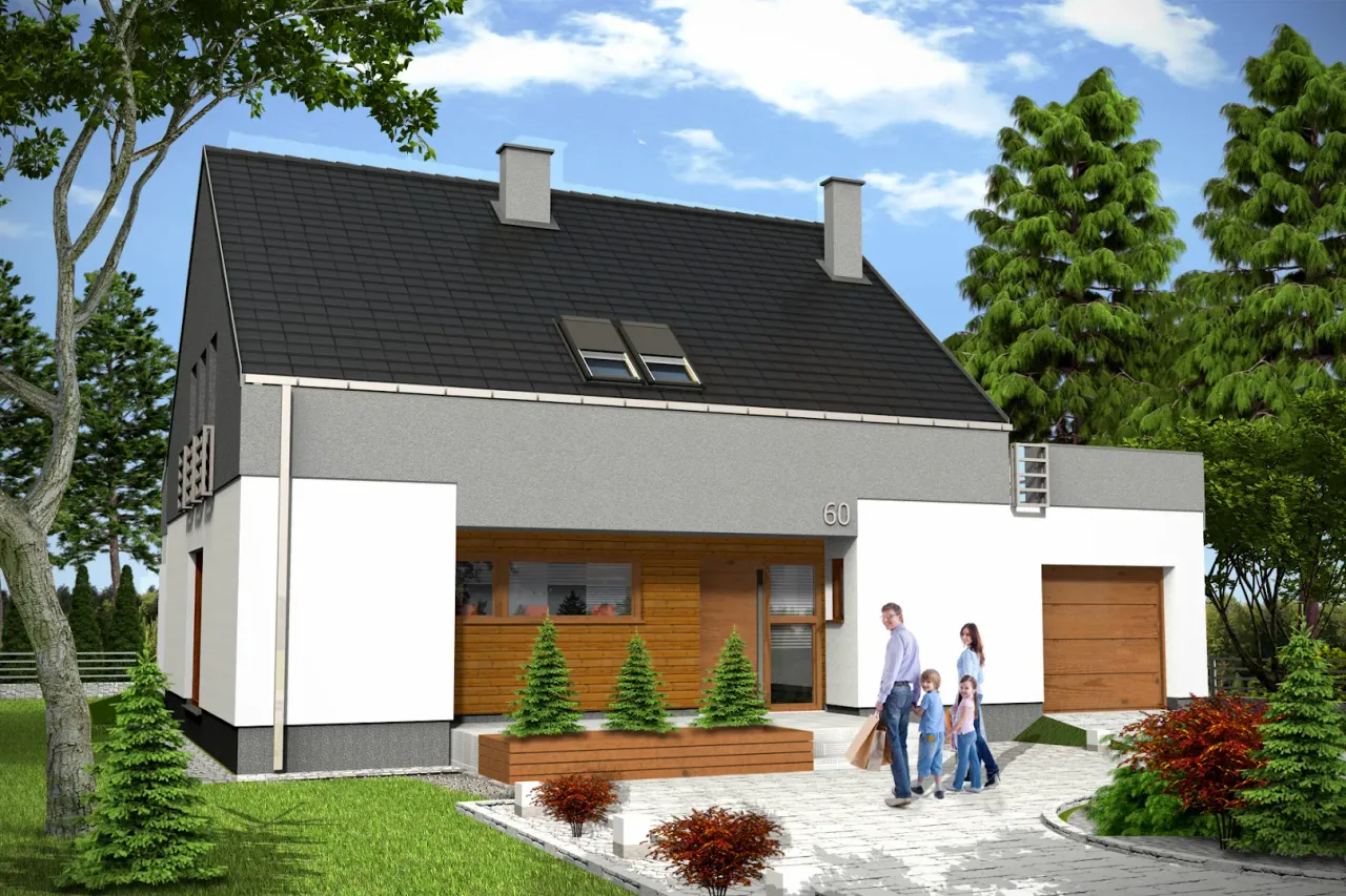 Wypełnij formularz i otrzymaj rysunki w pdf z dokładnymi wymiarami budynku i pomieszczeń (długość, szerokość, wysokość) dla projektu Oleg II z garażem 1-st. A