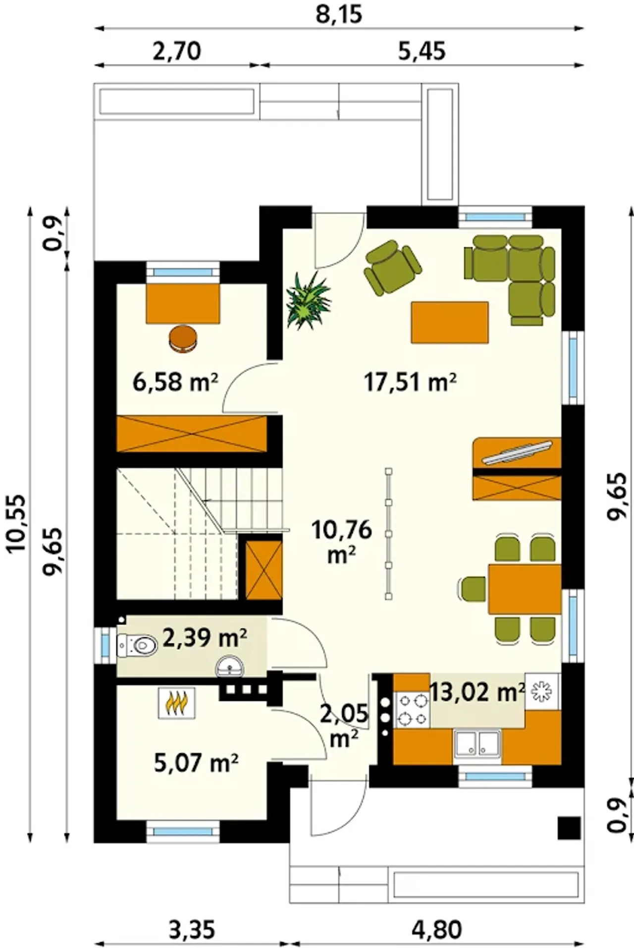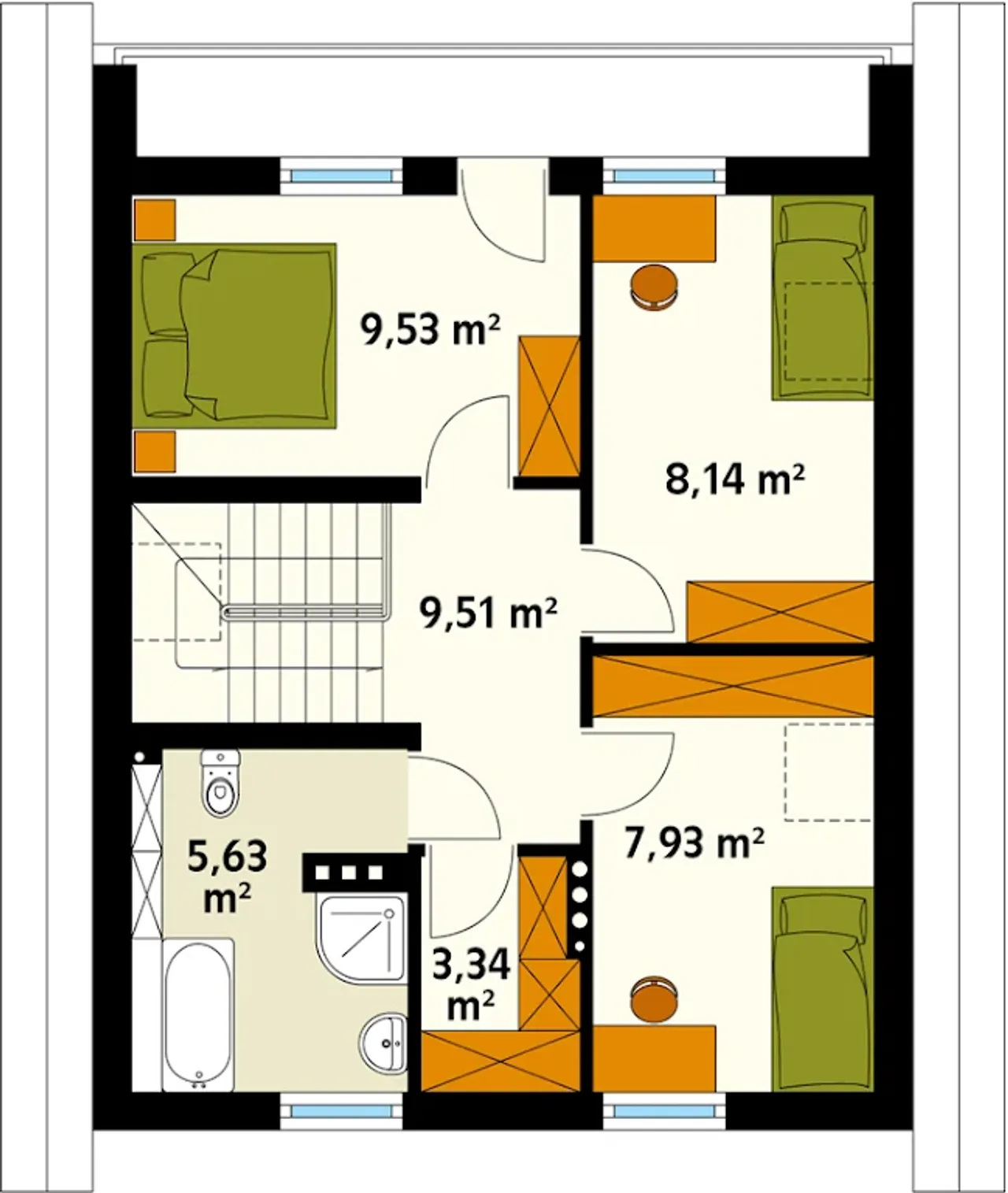 Wypełnij formularz i otrzymaj rysunki w pdf z dokładnymi wymiarami budynku i pomieszczeń (długość, szerokość, wysokość) dla projektu Oliwka 2