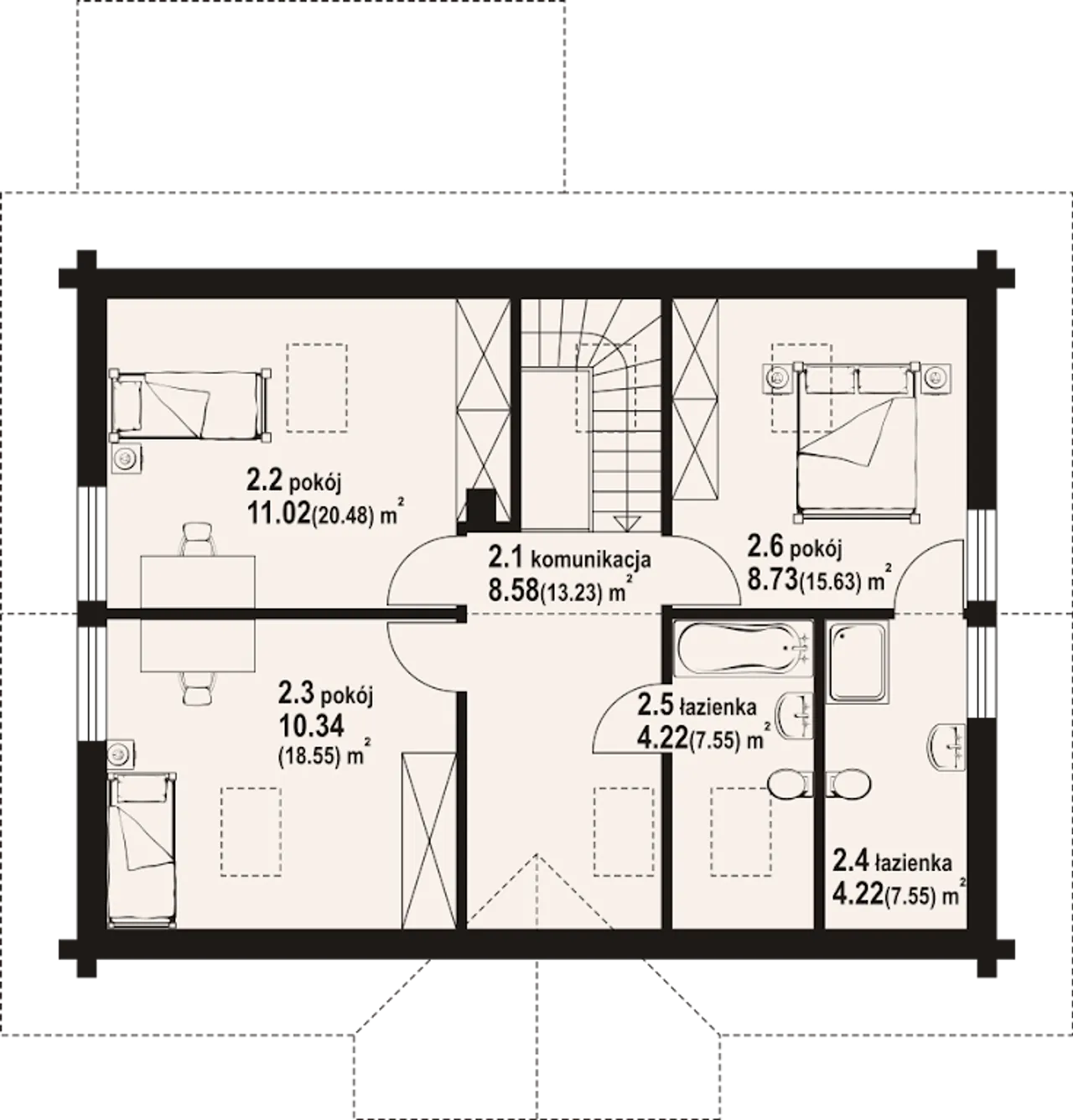 Wypełnij formularz i otrzymaj rysunki w pdf z dokładnymi wymiarami budynku i pomieszczeń (długość, szerokość, wysokość) dla projektu Olkowo 9 dw
