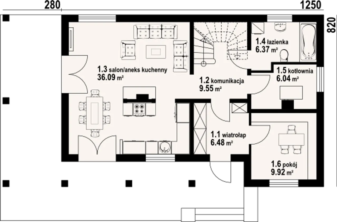 - opisu architektonicznego zawierającego m.in. opis przyjętych rozwiązań, zestawienia powierzchni (użytkowej, zabudowy, netto), kubatury oraz powierzchni poszczególnych pomieszczeń