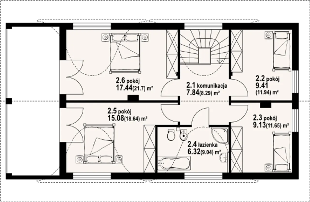 Wypełnij formularz i otrzymaj rysunki w pdf z dokładnymi wymiarami budynku i pomieszczeń (długość, szerokość, wysokość) dla projektu Olszynka mazurska dw