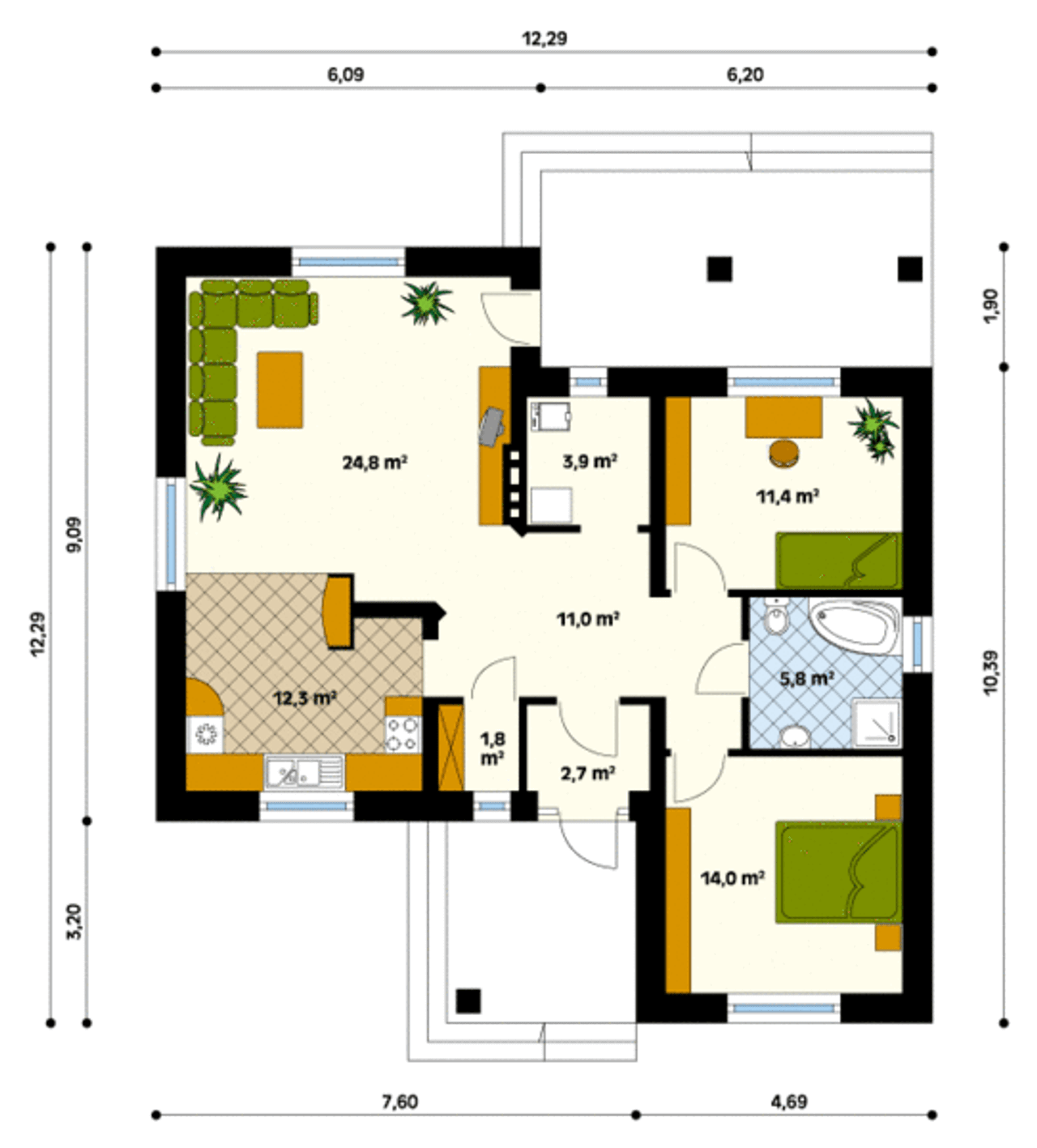 Długość budynku 12.29 m |