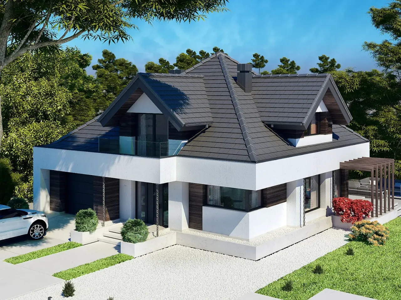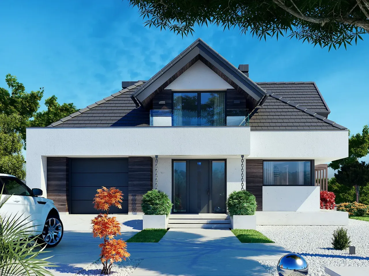 Bardzo estetyczny i nowoczesny projekt domu, który idealnie wpisuje się w gusty osób ceniących sobie przestrzeń i funkcjonalność. Ciekawy pomysł na dom dla rodziny szukającej własnego, unikalnego miejsca na ziemi.