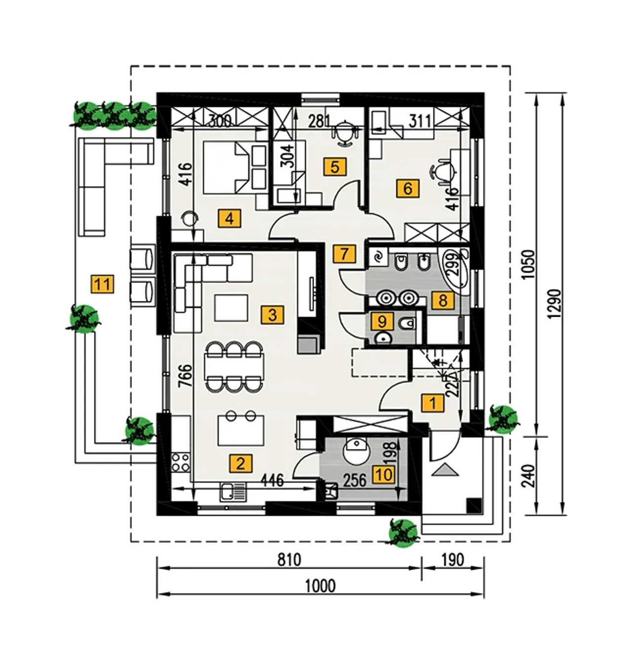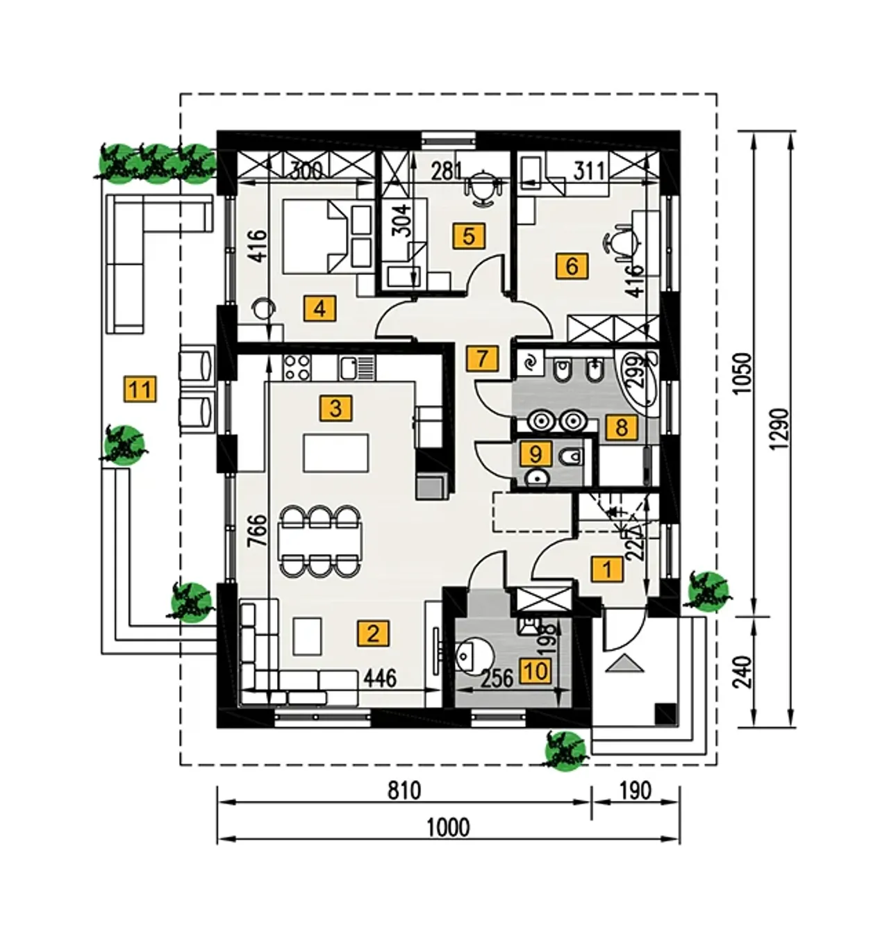 Wypełnij formularz i otrzymaj rysunki w pdf z dokładnymi wymiarami budynku i pomieszczeń (długość, szerokość, wysokość) dla projektu Opcjonalny - wariant I - A100K