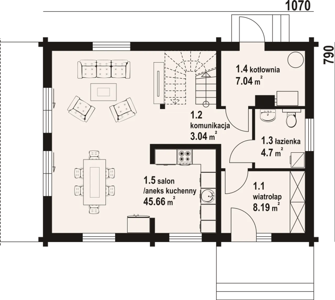 - opisu architektonicznego zawierającego m.in. opis przyjętych rozwiązań, zestawienia powierzchni (użytkowej, zabudowy, netto), kubatury oraz powierzchni poszczególnych pomieszczeń
