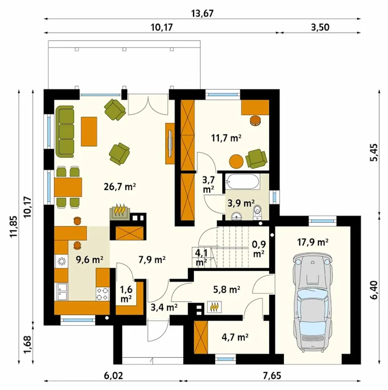 Wypełnij formularz i otrzymaj rysunki w pdf z dokładnymi wymiarami budynku i pomieszczeń (długość, szerokość, wysokość) dla projektu Orion