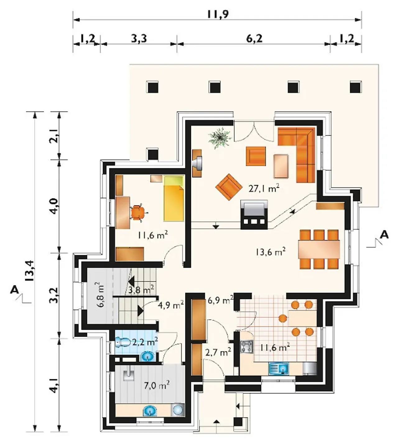 Długość budynku 11.9 m |