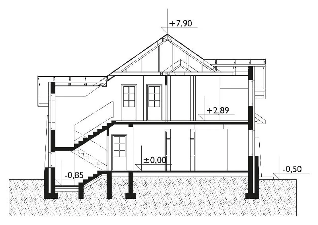 - przekroje - pokazują wszystkie elementy budynku po przecięciu go wzdłuż lub w poprzek od dachu do fundamentów tj. warstwy podłogi, stropów i dachu