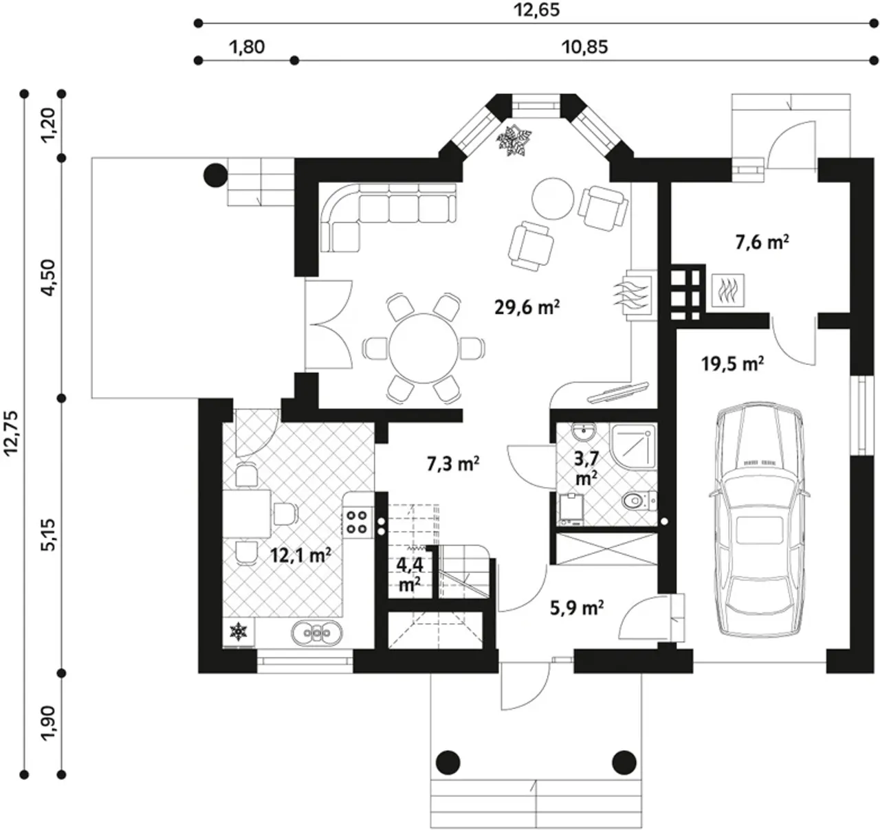 Długość budynku 12.65 m |
