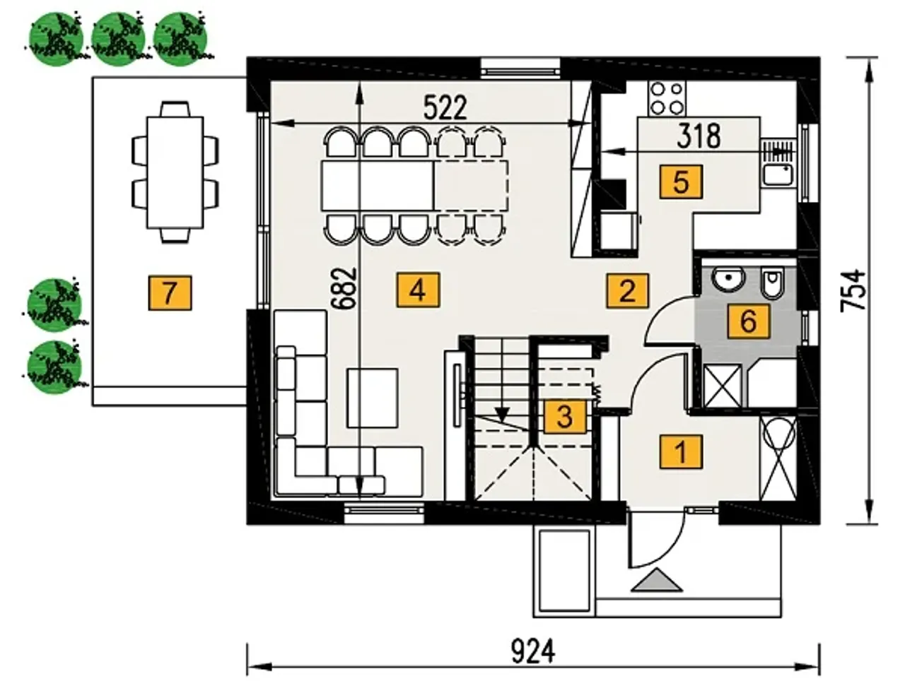 Długość budynku 7.54 m |