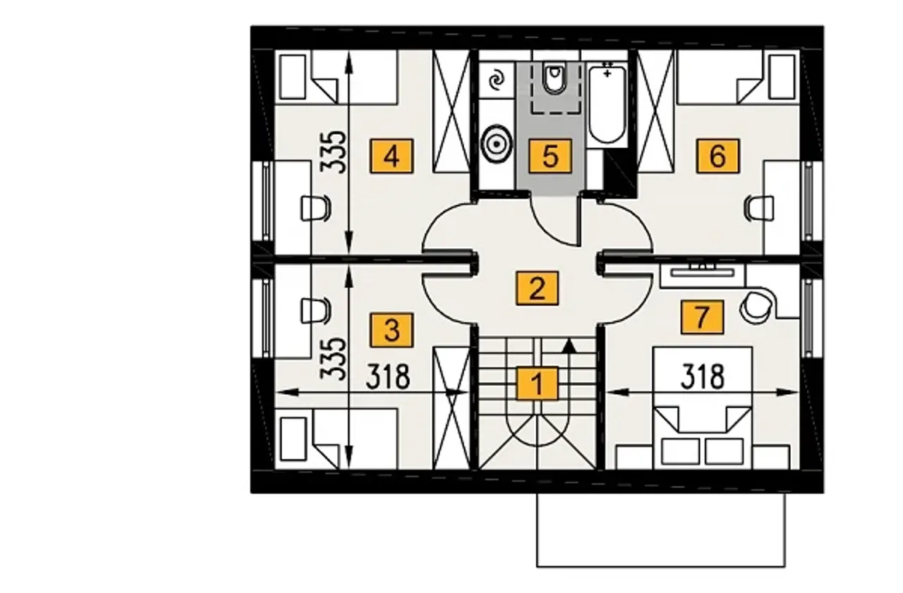 Wypełnij formularz i otrzymaj rysunki w pdf z dokładnymi wymiarami budynku i pomieszczeń (długość, szerokość, wysokość) dla projektu Osiągalny 1N - A107N+AR1