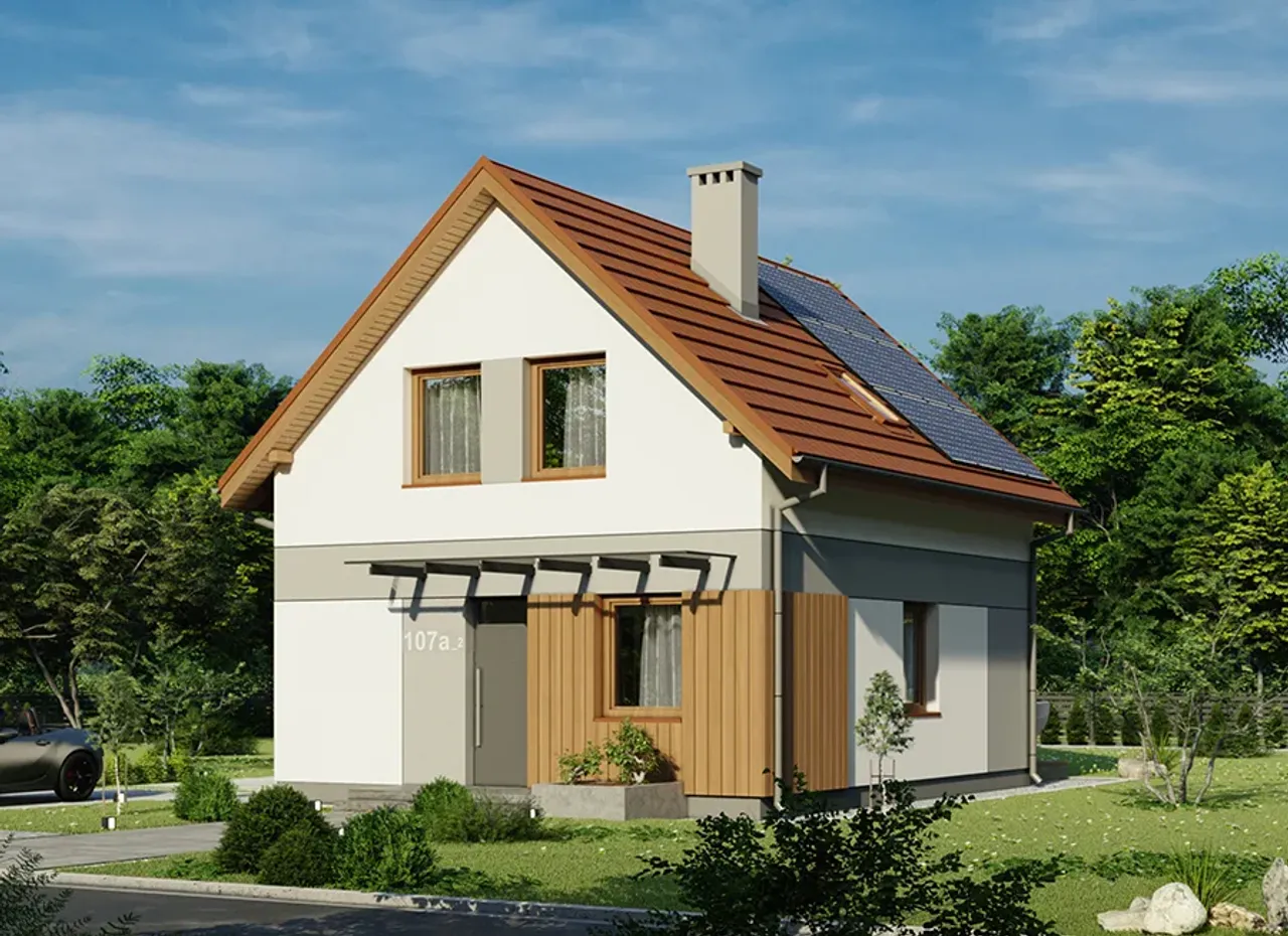 Wypełnij formularz i otrzymaj rysunki w pdf z dokładnymi wymiarami budynku i pomieszczeń (długość, szerokość, wysokość) dla projektu Osiągalny A pa - A107a/1
