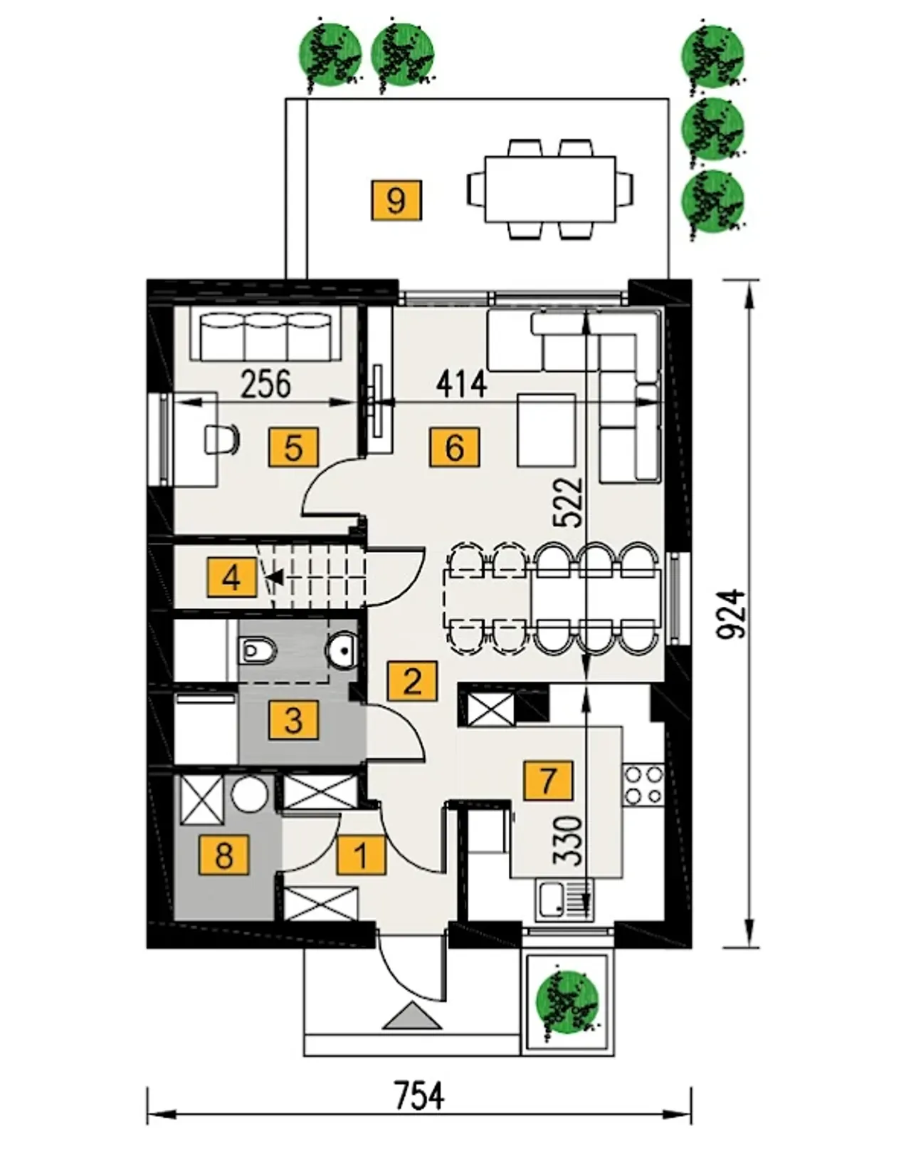 Szerokość budynku 7.54 m |